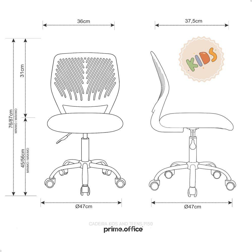 Cadeira Secretária Kids Giratória Teen Tela Mesh Moderna CinzaCadeira Secretária Kids Giratória Teen Tela Mesh Moderna Cinza - P150 Kids and TeensCadeira P150 Kids and Teens – Conforto, Estilo e Funcionalidade para CriançasA Cadeira P150 Kids and Teens da marca foi especialmente desenvolvida para crianças de até 12 anos, unindo ergonomia, design moderno e em um só produto. Ideal para acompanhar os pequenos durante as tarefas escolares, momentos de lazer ou tempo frente ao computador, ela proporciona conforto e praticidade para o dia a dia.Com assento em tela mesh respirável, altura ajustável e base giratória com rodízios, a cadeira oferece liberdade de movimentos e promove uma postura correta durante o uso. É uma excelente opção para quem busca um ambiente mais funcional e aconchegante para os estudos.Principais Benefícios:Ergonomia ideal para crianças: Encosto com curvatura anatômica e assento acolchoado para maior conforto.Tela mesh respirável: O tecido do assento permite a circulação de ar, evitando o acúmulo de calor mesmo em uso prolongado.Altura ajustável: A cadeira possui pistão a gás que permite regular a altura de acordo com o tamanho da criança e da mesa.Base giratória com rodízios: Movimentação suave e segura, sem riscos para o piso.Design moderno e cores versáteis: Disponível nas cores rosa, preta, cinza, azul e verde, combina com diversos estilos de decoração.Especificações Técnicas:Marca: Modelo: P150 Kids and TeensFaixa etária indicada: Até 12 anosPeso máximo suportado: 80 kgMaterial do assento: Tela meshMaterial da estrutura: Aço com base em nylonAltura ajustável: Sim, com pistão a gásFunção giratória: SimRodízios: Nylon de alta resistênciaCores disponíveis: Rosa, Preto, Cinza, Azul e VerdeGarantia: 90 dias contra de fabricaçãoPerguntas Frequentes:1. Essa cadeira é indicada para qual idade?A P150 Kids and Teens é recomendada para crianças de até 12 anos, com altura ajustável para acompanhar o crescimento.2. Suporta adultos ou adolescentes mais velhos?Não. O modelo foi desenvolvido exclusivamente para crianças, com limite de peso de até 80 kg.3. É fácil de montar?Sim. Acompanha manual de instruções e pode ser montada rapidamente, sem complicações.4. A cadeira esquenta com o uso?Não. O assento em tela mesh é ventilado e ajuda a manter a temperatura agradável, mesmo após longos períodos.5. Os rodízios riscam o chão?Não. Os rodízios são de nylon e deslizam suavemente, sem causar danos ao piso.Características Gerais do Produto:- Cadeira: Ajuste de Altura com Pistão a gás classe 01- Material da Cadeira: Material do Assento em Tela Mesh respirável e resistente- Modelo: Cadeira P150 Kids and Teens- Altura: 87 cm- Largura: 36 cm- Peso: 5,00 kg- Profundidade: 37,5 cmAcompanha o produto:- 01 Cadeira P150 Kids- 01 Manual de Montagem- 01 Chave de MontagemGarantia:- Garantia de