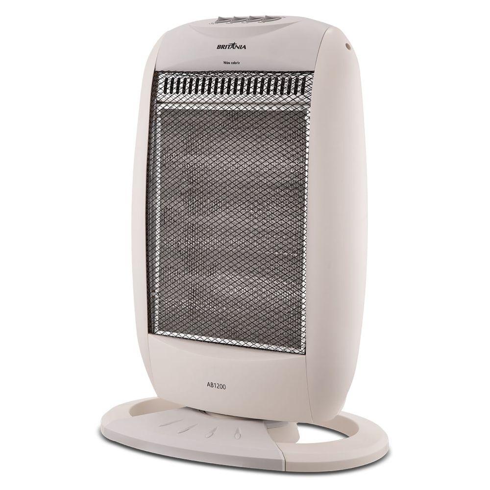 Aquecedor Britânia 3 Níveis de Potência 1200W AB1200 110VO Aquecedor Britânia 3 Níveis de Potência 1200W AB1200 oferece aquecimento eficiente e para seu lar. Com 3 níveis de potência (400W, 800W e 1200W), permite controlar a intensidade do calor conforme a sua necessidade. As lâmpadas de halogênio garantem aquecimento rápido, ideal para dias frios.Seu sistema oscilante distribui o calor uniformemente no ambiente, aumentando a sensação de conforto térmico. Além disso, conta com proteção contra tombamento, desligando automaticamente o aparelho em caso de queda, e grade protetora para maior .Com alça para e cordão de 1,30m, o Aquecedor Britânia 3 Níveis de Potência é fácil de manusear e transportar para qualquer ambiente da casa. A combinação de metal, plástico e vidro em sua estrutura garante durabilidade, resistência e leveza.Compacto, prático e potente, é ideal para quartos, salas e pequenos escritórios. Escolha a qualidade da Britânia e aproveite o inverno com tranquilidade, e um toque de elegância.Principais Características:- Aquecedor com 3 níveis de potência: 400W, 800W e 1200W- Lâmpadas de halogênio: aquecimento rápido- Função Oscilar: calor distribuído uniformemente- Grade protetora: reforçada- Desligamento automático em caso de queda- Estrutura em metal, plástico e vidro- Alça para e cabo de 1,30m- Baixo consumo: apenas 1,2 kWh- Disponível em 110V ou 220V.Especificações Técnicas:Marca: BritâniaModelo: AB 1200WCor: BrancoPotência (W): 1200 WConsumo (kW/h): 1,2Modo de aquecimento: Lâmpadas de HalogênioControle de temperatura: 3 opçõesAltura do produto: 54,8 cmLargura do produto: 37,6 cmComprimento do produto: 30 cmPeso do produto: 2,208 kgAltura com embalagem: 57,5 cmLargura com embalagem: 34,5 cmComprimento com embalagem: 16 cmPeso com embalagem: 2,65 kgGarantia (Dias): 360Observação: Somente faturamos para o nosso consumidor final, ou seja, não faturamos pedidos para CNPJ por este portal de vendas;