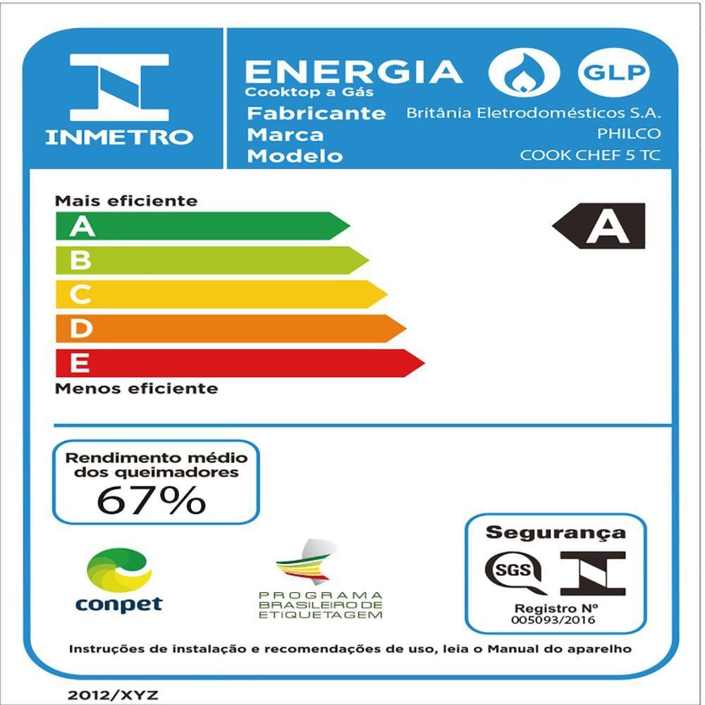 Cooktop A Gás Philco 5 Queimadores Cook Chef Bisotê Bivolt
