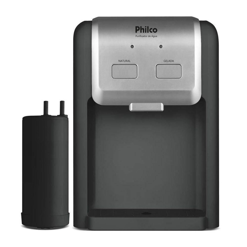 Purificador de Água Philco Dupla Filtragem 70W PPU11C BivoltO Purificador de Água Philco PPU11C foi projetado para garantir hidratação segura, prática e eficiente no dia a dia. Com dupla filtragem, utiliza carvão ativado para reter partículas, eliminar impurezas, reduzir odores e diminuir o cloro livre, entregando água mais pura e de melhor sabor. Sua refrigeração por placa eletrônica assegura baixo consumo de energia e mantém a água gelada entre 6 e 12°C.O Purificador de Água Philco é bivolt, oferecendo liberdade total para instalar em qualquer ambiente, sem preocupação com voltagem. O sistema Filtro Troca-Fácil simplifica totalmente a manutenção: basta abrir, girar e substituir. A bandeja coletora removível amplia a versatilidade, permitindo acomodar recipientes maiores e facilitar a limpeza.Com 70W de potência, o Purificador de Água PPU11C refrigera a água rapidamente e conta com luz indicadora de funcionamento e de reservatório gelado. Cada filtro tem capacidade para até 2.000L, uma solução sustentável que reduz o uso de garrafas plásticas. É a escolha ideal para quem busca desempenho, economia e segurança na água consumida.Dupla filtragemRefrigeração por placa eletrônicaBivoltFiltro Troca-FácilCada filtro evita o descarte de até 4.000 garrafas plásticas.Bandeja coletora removível70W de potênciaFiltro com eficiência bacteriológicaCapacidade de filtragem de 2.000L ou 6 meses,Temperatura da água entre 6 graus e 12 grausCapacidade de refrigeração de 0,16L/hCapacidade do reservatório: 0,8LLuz indicadora de funcionamentoNão necessita garrafões.Especificações Técnicas:Marca: PhilcoAcionamento: BotãoModelo: PPU11CEstado: NovoÁgua quente: NãoQuantidade de torneiras: 1Com bandeja coletora de água removível: SimÁgua natural: SimÁgua gelada: SimComporta garrafão de até: N/ACom sistema perfurador de garrafão: N/ACor: CinzaLugar de colocação: De bancadaTipo de alimentação: Energia ElétricaAltura do produto: 37 cmLargura do produto: 26,5 cmComprimento do produto: 30 cmPeso do produto: 3,25 kgAltura com embalagem: 43,5 cmLargura com embalagem: 33 cmComprimento com embalagem: 31 cmPeso com embalagem: 4,08 kgGarantia (Dias): 360Observação: Somente faturamos para o nosso consumidor final, ou seja, não faturamos pedidos para CNPJ por este portal de vendas;