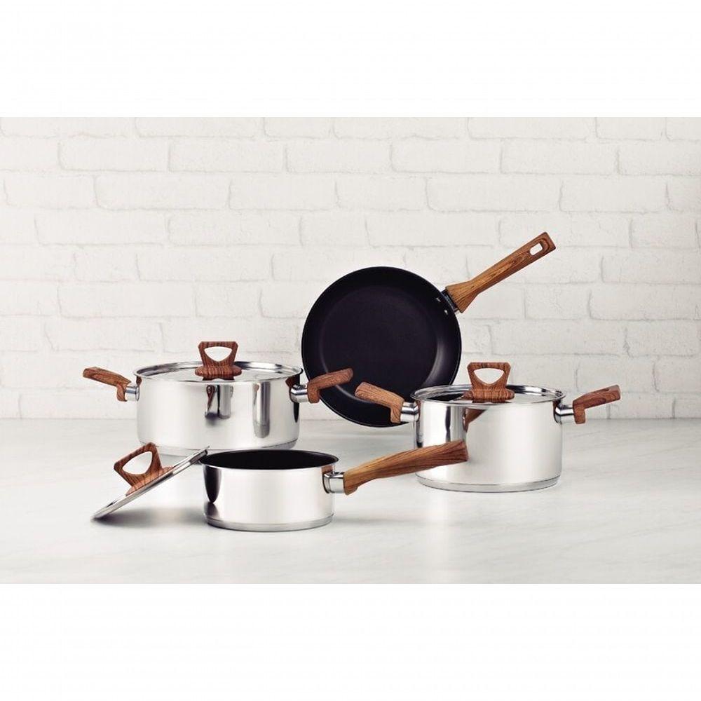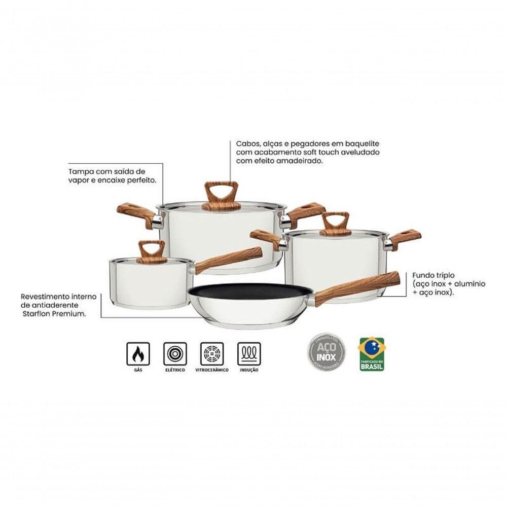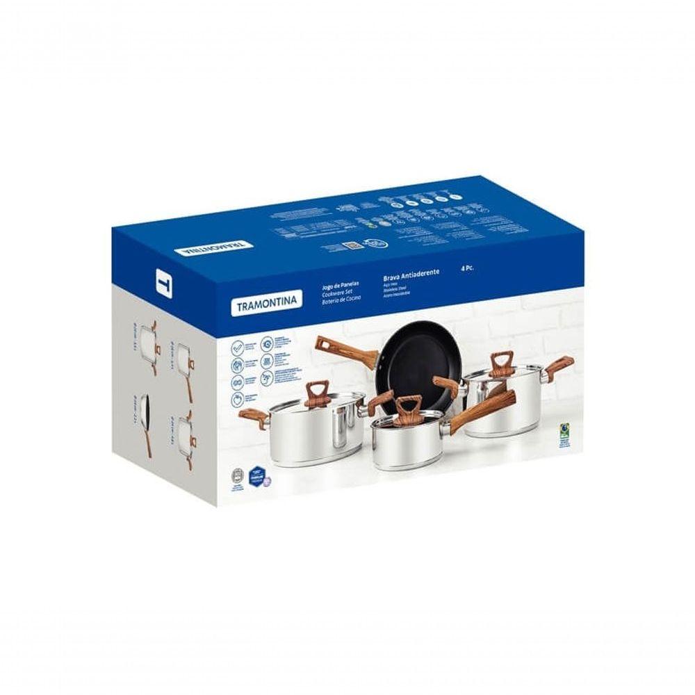 Jogo De Panelas Tramontina Brava Antiaderente Aço Inox Com Efeito Amadeirado 4 Peças