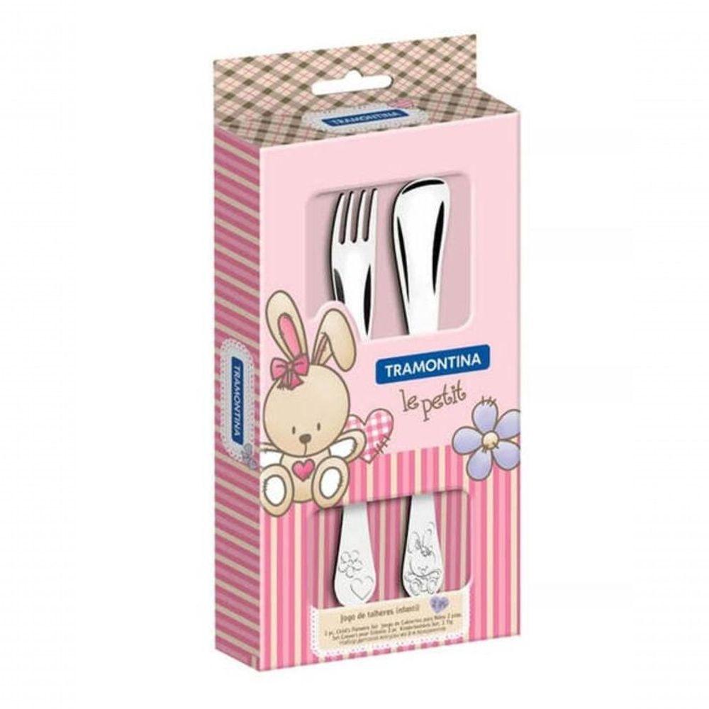 Jogo De Talheres Infantil Tramontina Le Petit Em Inox Com Desenho Em Alto Relevo 2 Peças