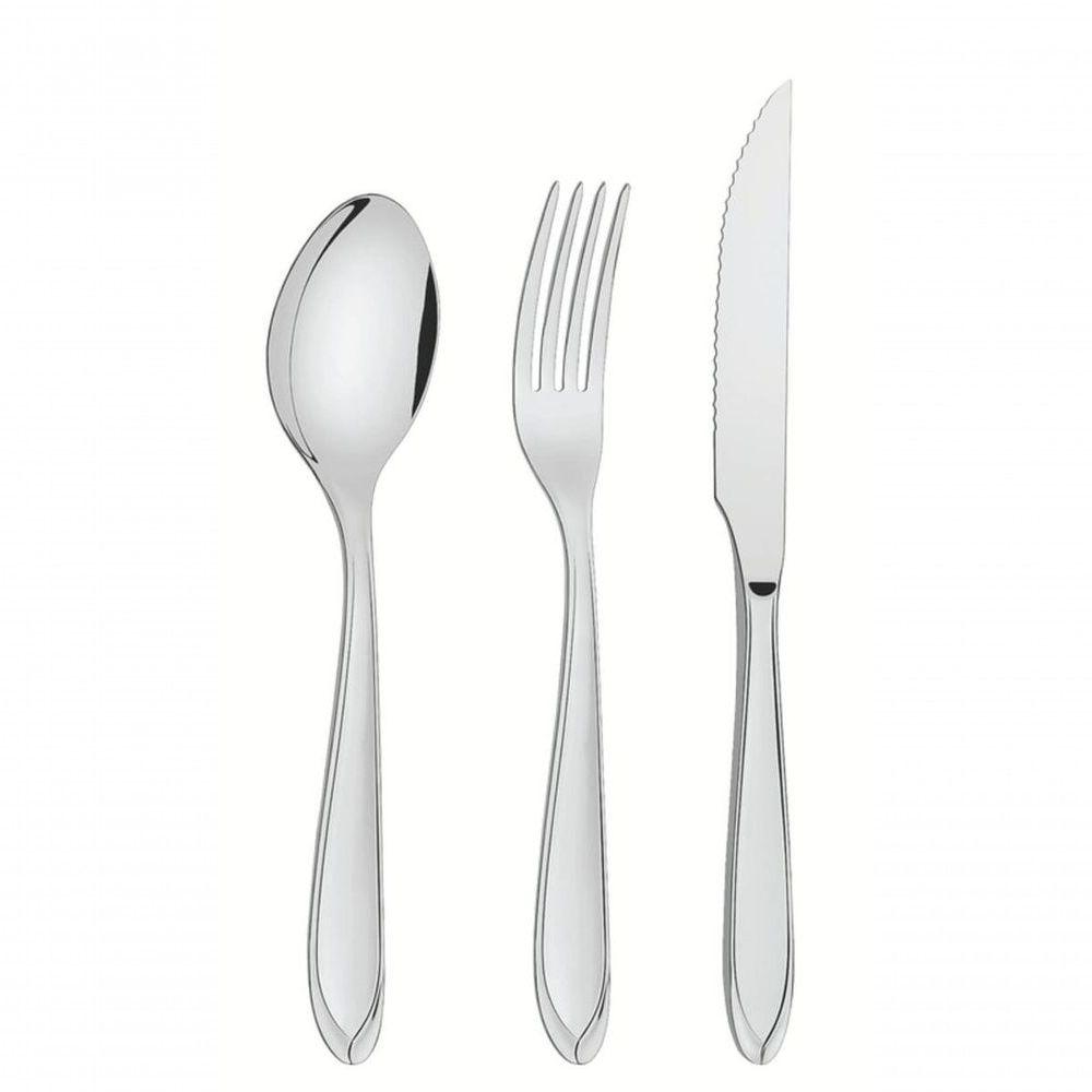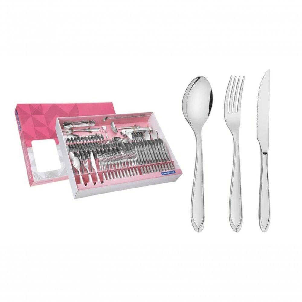 Faqueiro Tramontina Laguna Em Inox Com Facas Para Churrasco 100 PeçasUma mesa bem-posta é uma presente que todo mundo pode se dar todos os dias. Talheres e acessórios brilhantes, uma toalha bonita e pequenos toques de decoração tornam qualquer momento mais especial. Afinal, uma boa refeição deve ser saboreada também com os olhos.Recomendações de Uso:Antes do uso: Antes de utilizar o , remova as eventuais etiquetas e lave-o com água quente e de uso: Durante a lavagem use somente esponja macia, outros tipos de produtos, como palha de aço, poderão riscar ou prejudicar o brilho dos talheres. Enxágue bem cada peça a fim de remover totalmente os resíduos dos produtos de limpeza, que por serem abrasivos, podem danificar o inox. Após a lavagem enxugue os talheres, pois as substâncias químicas contidas na água poderão causar manchas. Sempre que possível use água quente, pois renova o brilho dos talheres. Evite o das peças com superfícies quentes, pois podem provocar a descoloração do produto. Quando usar a máquina de lavar louça, recomendamos retirar os talheres logo que tenha terminado o ciclo enxaguar, a fim de que os mesmos sejam secados manualmente.- Foto meramente ilustrativa.- Embalagem litografada.Informações Adicionais:- Próprias para uso diário;- Peças totalmente feitas de aço inox;- Acabamento em brilho, com detalhes no cabo;- Podem ser lavadas diariamente na máquina de lavar louças;- Facas totalmente temperadas, que garantem maior durabilidade no fio de corte e maior resistência à corrosão, e por suas características de temperabilidade, não riscam as porcelanas.Composição:12 Colheres mesa - Comprimento: 190 mm - Espessura: 1,60 mm12 Garfos mesa - Comprimento: 192 mm - Espessura: 1,60 mm12 Facas churrasco - Comprimento Lâmina: 104 mm - Comprimento Total: 212 mm - Espessura: 3,00 mm12 Colheres média - Comprimento: 14,09 mm - Espessura: 1,20 mm12 Garfos torta - Comprimento: 139 mm - Espessura: 1,20 mm12 Colheres chá - Comprimento: 128 mm - Espessura: 1,00 mm12 Colheres café - Comprimento: 91 mm - Espessura: 0,80 mm01 Concha Feijão01 Pá para Bolo01 Colher para Salada01 Garfo para Salada01 Garfo Trinchante para Carne01 Pegador para Massa01 Pegador Para Gelo01 Pá Para Açúcar06 Colheres Para Refresco01 Colher Para CoqueteL01 Colher Para Arroz
