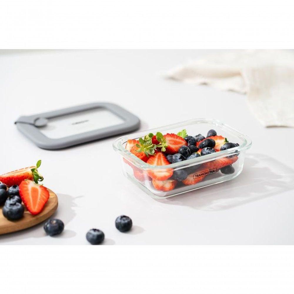 Pote De Vidro Tramontina Vittra 0,64 Litros Com Tampa Hermética De Silicone Ideal para quem busca soluções inteligentes na cozinha, o pote de vidro Tramontina Vittra retangular de 0,64 litro é feito em vidro borossilicato, resistente a variações de temperatura e perfeito para armazenar alimentos com segurança. A tampa de vidro com borda em silicone proporciona vedação hermética, preservando o frescor por mais tempo. Compatível com micro-ondas, forno (sem tampa), freezer e geladeira, também pode ser empilhado, facilitando a organização. Uma opção prática e funcional para manter tudo no lugar e ao seu alcance.Recomendações de Uso:Modo de Uso: ;Confira o produto para garantir que ele não tenha sido danificado durante o transporte. Lave o produto com água e detergente neutro antes de usar. Use apenas sabão ou detergente e uma esponja macia. Outros tipos de produto, como palha de aço, poderão riscar ou prejudicar o brilho das peças. Por ter o corpo em vidro, requer certos cuidados durante o uso e manuseio: Evite batidas que possam ocasionar trincas ou quebras no produto.- Foto meramente ilustrativa.Informações Adicionais:- Permitido para freezer e geladeira;- Apropriado para forno (sem a tampa);- Permitido para máquina de lavar (sem a tampa);- Adequado para micro-ondas (cuidado: abra a abertura de saída de ar);- Eles são empilháveis, permitindo que você aproveite ao máximo o espaço do seu armário de forma organizada;- Para fechar a tampa, abra primeiramente a abertura de saída de ar, coloque a tampa no corpo e, em seguida, feche a abertura de saída de ar;- Com tampas de vidro com borda em silicone, os potes tem fechamento hermético perfeito e garante que seus alimentos ficarão frescos por mais tempo, sem risco de contaminação externa.