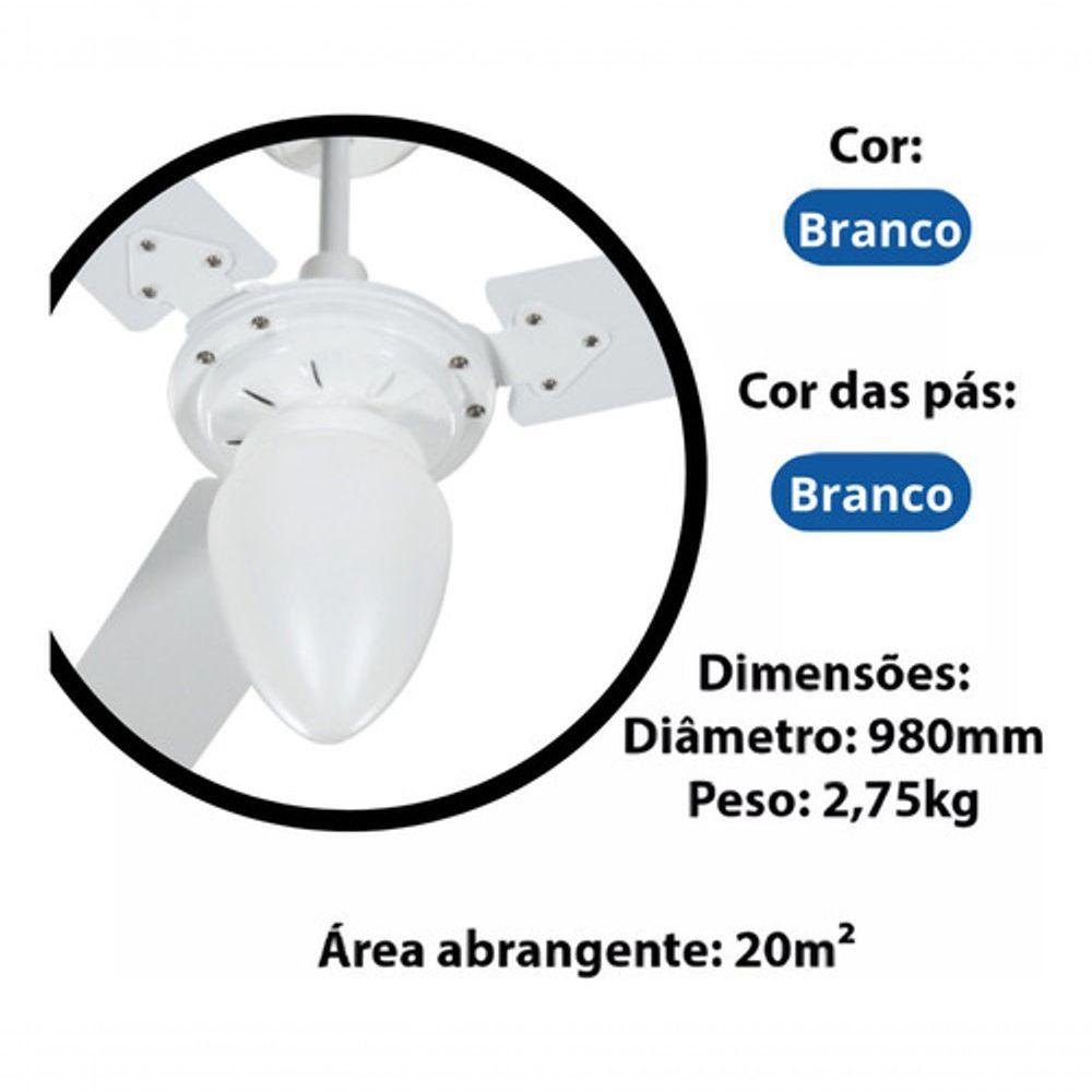 Ventilador De Teto Tron Pera New 3 Pás Branco 110V
