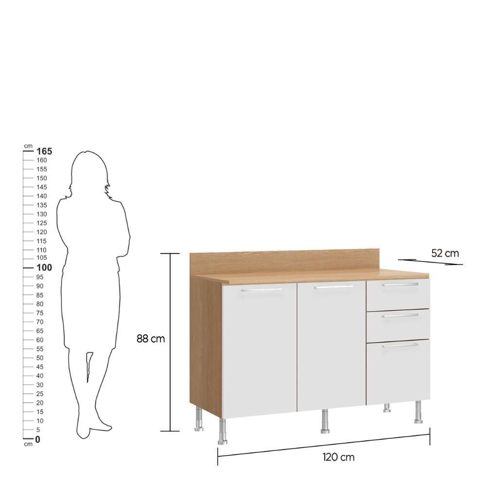 Balcão Cozinha Ditália Aspen Carvalho Branco com Tampo Carvalho Cd-171 !! Sua cozinha vai ficar muito mais bonita e organizada com o Balcão 2 Portas e 3 Gavetas com Tampo Ditália Aspen. Possui amplo espaço interno e pode compor vários ambientes junto dos demais módulos que compõem a Cozinha Ditália Aspen.CaracterísticasProduzido em MDP de 15 mm, revestido de pintura Ultra Violeta (UV).O módulo possui molduras exclusivas produzidas em MDF.Puxadores em PVC.Tampo do balcão em 15 mm.INFORMAÇÕES TÉCNICASPeso: 44 kgAltura: 89 cmLargura: 120 cmProfundidade 52 cmAcompanha Kit Ferragens e Manual de Montagem (montagem não inclusa).Este produto é vendido desmontado em 1 volume embalado em caixa de papelão com isopor nas laterais e revestidos com plásticos termoencolhível.A fixação é feita por Girofix, Cavilhas e Parafusos, é necessário fixar todos os módulos na parede, inclusive balcões.Perguntas frequentes:1 - O produto é entregue montado?Resposta: Nossos produtos são entregues desmontados. Os móveis são acompanhados de todos componentes necessários (manual de montagem, parafusos, pregos, puxadores e etc..) para que possam ser montados com facilidade.2 - Vocês oferecem de montagem?Resposta: Não disponibilizamos este .3 - Qual o valor da ?Resposta: !!4 - Os produtos são novos?Resposta: Sim, trabalhamos apenas com produtos novos.5 - Vocês atendem todos os estados do ?Resposta: Sim, enviamos nossos produtos para todo o .6 - O Tampo acompanha o Balcão?Resposta: Sim, o Tampo acompanha o Balcão.7 - É possível colocar Pia ao invés do Tampo?Resposta: Sim, é possível colocar Pia no lugar do Tampo.LimpezaLimpar utilizando apenas pano umedecido com água, nunca utilizar abrasivos ou esponjas de aço.GARANTIAGarantia de 3 meses (contra de fabricação).ObservaçõesAs dimensões estão expressas na seguinte forma: Altura x Largura x Profundidade em cm.Montar o móvel deitado de costas.Forrar o chão com o papelão das embalagens, aconselhamos a ser feita por um , não expor o móvel a fontes de calor ou de umidade.As imagens indicam uma sugestão de uso e são apenas ilustrativas, os objetos decorativos não estão inclusos. NA
