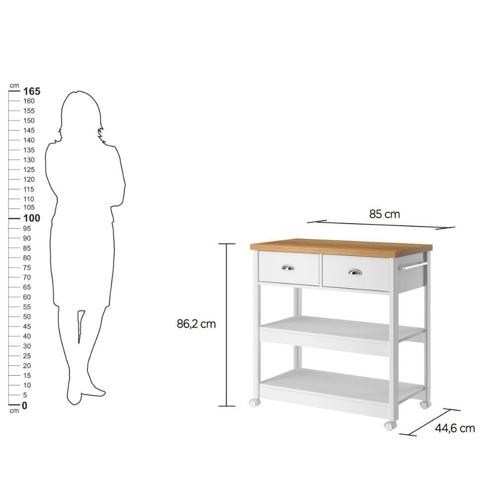 Carrinho Churrasco Ditália 2 Gavetas Ba-135ancoSeu ambiente vai ficar muito mais bonito e organizado com o Aparador Carrinho Churrasco Ditália. O Carrinho de Churrasco possui 2 gavetas, 2 prateleiras que suportam até 5 kg cada, gavetas com corrediças metálicas que permitem abertura e fechamento de modo prático, funcional e seguro. Móvel ideal para compor ambientes e acomodar seu aparelho de jantar, utensílios domésticos, objetos de decoração, bebidas, livros de receitas...Características- Produzido em MDP de 15 mm com revestimento em pintura UV.- A base superior suporta até 10 kg.- Possui prateleiras que suportam até 5 kg.- Possui 2 gavetas com corrediças metálicas que suportam até 5 kg cada.- Puxadores e porta-toalha metálicos.- 4 rodízios, sendo 2 com travas.- Tampo padrão carvalho em MDP 30 mm.- Estruturas laterais em MDF 30 mm.INFORMAÇÕES TÉCNICAS- Peso: 24 kg- Altura: 86,2 cm- Largura: 85 cm- Profundidade: 44,6 cm- Acompanha Kit Ferragens e Manual de Montagem (montagem não inclusa).- Este produto é vendido desmontado em 1 volume, embalado em caixa de papelão com isopor nas laterais e revestidos com plásticos termoencolhível.- A fixação é feita por Girofix, Cavilhas e Parafusos, não é necessário parafusar na parede.Perguntas frequentes:1 - O produto é entregue montado?Resposta: Nossos produtos são entregues desmontados. Os móveis são acompanhados de todos componentes necessários (manual de montagem, parafusos, pregos, puxadores e etc..) para que possam ser montados com facilidade.2 - Vocês oferecem serviço de montagem?Resposta: Não disponibilizamos este serviço.3 - Qual o valor da entrega?Resposta: O valor referente a entrega dependerá do destino final da mercadoria, para calcular o valor, é considerado o CEP do consumidor.4 - Os produtos são novos?Resposta: Sim, trabalhamos apenas com produtos novos.5 - Vocês atendem todos os estados do Brasil?Resposta: Sim, enviamos nossos produtos para todo o Brasil.LimpezaLimpar utilizando apenas pano umedecido com água, nunca utilizar abrasivos ou esponjas de aço.GARANTIAGarantia de 3 Meses (contra defeito de fabricação).Observações- As dimensões estão expressas na seguinte forma: Altura x Largura x Profundidade em cm.- Montar o móvel deitado de costas.- Forrar o chão com o papelão das embalagens, aconselhamos a ser feita por um profissional, não expor o móvel a fontes de calor ou de umidade.- As imagens indicam uma sugestão de uso e são apenas ilustrativas, os objetos decorativos não estão inclusos. Produto: Carrinho Churrasco | Cor: Branco | Tonalidade: Branco | Cor: Branco