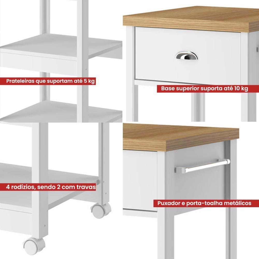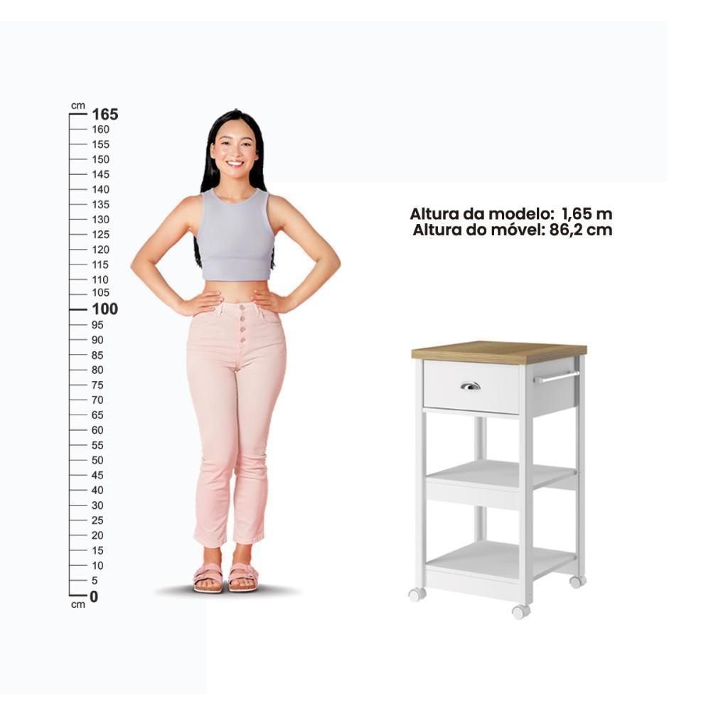 Carrinho Churrasco Ditália Ba-130 BrancoO Carrinho Churrasco Ditália é um complemento indispensável para quem busca beleza e organização no ambiente. Com seu design elegante e funcional, ele adiciona um toque de sofisticação a qualquer espaço. Além disso, sua estrutura bem pensada oferece praticidade na hora de preparar e servir churrascos, tornando-o uma escolha ideal para aqueles que desejam facilitar as atividades ao ar livre ou em áreas de lazer.CaracterísticasProduzido em MDP de 15 mm com revestimento em pintura UV.A base superior suporta até 10 kg.Possui prateleiras que suportam até 5 kg.Possui 1 gaveta com corrediças metálicas que suporta até 5 kg.Puxador e porta-toalha metálicos.4 rodízios, sendo 2 com travas.Tampo padrão carvalho em MDP 30 mm.Estruturas laterais em MDF 30 mm.INFORMAÇÕES TÉCNICASPeso: 14,50 kgAltura: 86,2 cmLargura: 44,6 cmProfundidade: 44,6 cmAcompanha Kit Ferragens e Manual de Montagem (montagem não inclusa).Este produto é vendido desmontado em 1 volume, embalado em caixa de papelão com isopor nas laterais e revestidos com plásticos termoencolhível.A fixação é feita por Girofix, Cavilhas e Parafusos, não é necessário parafusar na parede.Perguntas frequentes:1 - O produto é entregue montado?Resposta: Nossos produtos são entregues desmontados. Os móveis são acompanhados de todos componentes necessários (manual de montagem, parafusos, pregos, puxadores e etc..) para que possam ser montados com facilidade.2 - Vocês oferecem serviço de montagem?Resposta: Não disponibilizamos este serviço.3 - Qual o valor da entrega?Resposta: O valor referente a entrega dependerá do destino final da mercadoria, para calcular o valor, é considerado o CEP do consumidor.4 - Os produtos são novos?Resposta: Sim, trabalhamos apenas com produtos novos.5 - Vocês atendem todos os estados do Brasil?Resposta: Sim, enviamos nossos produtos para todo o Brasil.LimpezaLimpar utilizando apenas pano umedecido com água, nunca utilizar abrasivos ou esponjas de aço.GARANTIAGarantia de 3 Meses (contra defeito de fabricação).ObservaçõesAs dimensões estão expressas na seguinte forma: Altura x Largura x Profundidade em cm.Montar o móvel deitado de costas.Forrar o chão com o papelão das embalagens, aconselhamos a ser feita por um profissional, não expor o móvel a fontes de calor ou de umidade.As imagens indicam uma sugestão de uso e são apenas ilustrativas, os objetos decorativos não estão inclusos. Produto: Carrinho Churrasco | Cor: Branco | Tonalidade: Branco | Fabricante: Ditalia moveis | Cor: Branco