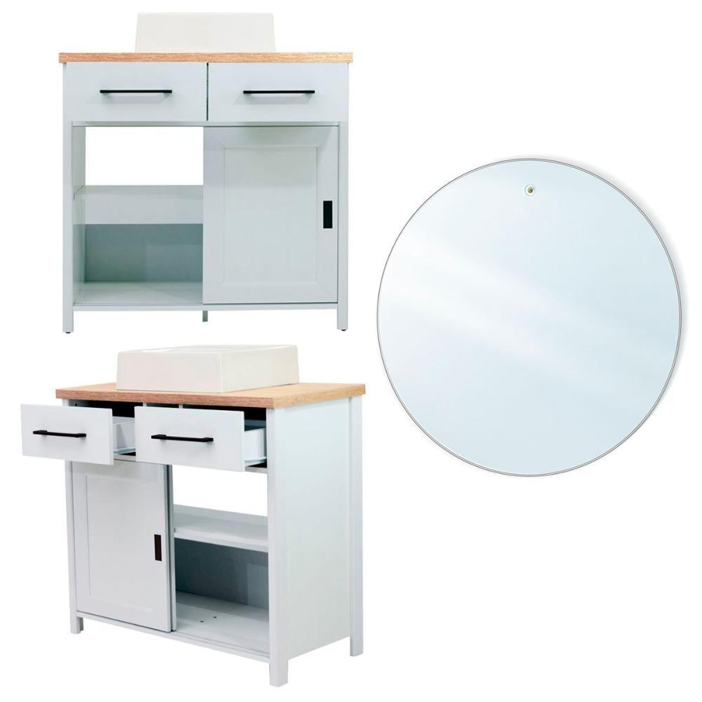 Gabinete Armário Banheiro Ditália com Cuba + Espelho Bn-03 CinzaTransforme seu banheiro em um oásis de elegância com o nosso gabinete de banheiro completo, que inclui uma cuba deslumbrante e um espelho refinado.INCLUI:BALCÃOCUBAENCANAMENTO PARA DESÁGUE (VÁLVULA E CIFÃO)ESPELHONÃO INCLUI:TORNEIRACaracterísticasProduzido em MDP de 15 mm com revestimento em pintura UV FOSCA.A CUBA suporta até 20 kg.Possui prateleiras que suportam até 5 kg.Estruturas laterais em MDF 30 mm. Super resistentes.2 PortasINFORMAÇÕES TÉCNICAS GABINETE + CUBAPeso: 30,700 kgAltura: 78,3 cmLargura: 85 cmProfundidade: 44,6 cmINFORMAÇÕES TÉCNICAS ESPELHODiâmetro: 55,5 cmPeso: 3,200 kgAcompanha Kit Ferragens e Manual de Montagem (montagem não inclusa).Este produto é vendido desmontado em 2 volumes, embalado em caixa de papelão com isopor e revestidos com plásticos termoencolhível.A fixação é feita por Girofix, Cavilhas e Parafusos.Perguntas frequentes:1 - O produto é entregue montado? Resposta: Nossos produtos são entregues desmontados. Os móveis são acompanhados de todos componentes necessários (manual de montagem, parafusos, pregos, puxadores e etc..) para que possam ser montados com facilidade.2 - Vocês oferecem de montagem? Resposta: Não disponibilizamos este .3 - Qual o valor da ? Resposta: O valor referente a dependerá do destino final da mercadoria, para calcular o valor, é considerado o CEP do consumidor.4 - Os produtos são novos? Resposta: Sim, trabalhamos apenas com produtos novos.5 - Vocês atendem todos os estados do ? Resposta: Sim, enviamos nossos produtos para todo o .6- Acompanha Espelho? Resposta: Sim, acompanha espelho com 55,5 cm de diâmetro.7- Acompanha pia? Resposta: Sim acompanha a pia e encanamento necessário para instalação (cifão e válvula).8- Acompanha torneira? Resposta: Não acompanha torneira. GARANTIA Garantia de 3 Meses (contra de fabricação).Observações - As dimensões estão expressas na seguinte forma: Altura x Largura x Profundidade em cm. - Montar o móvel deitado de costas. - Forrar o chão com o papelão das embalagens, aconselhamos a ser feita por um , não expor o móvel a fontes de calor ou de umidade. - As imagens indicam uma sugestão de uso e são apenas ilustrativas, os objetos decorativos não estão inclusos. Altura do Produto com Embalagem (cm): 17,50 | Largura Produto Com Embalagem (cm): 47,50 | Comprimento Produto Com Embalagem (cm): 104,50 | Peso Produto Com Embalagem (Kg): 30,70 | Altura do Produto (cm): 78,30 | Largura do Produto (cm): 85,00 | Comprimento do Produto (cm): 44,60 | Peso do Produto (Kg): 29 | Descrição do Tamanho: (85 x 78 x 44) | Cor: Branco | Material para Filtro: MDF/MDP | Produto: Gabinete Armário Banheiro | Tonalidade: Branco | Cor: Cinza