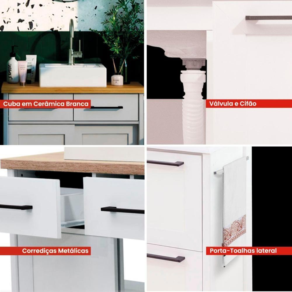 Gabinete Armário Banheiro Ditália Com Cuba + Espelho Bn-03 Cinza