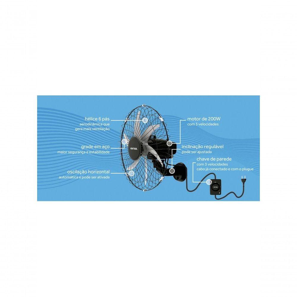 Ventilador De Parede Ventisol Steel 50cm Preto Bivolt