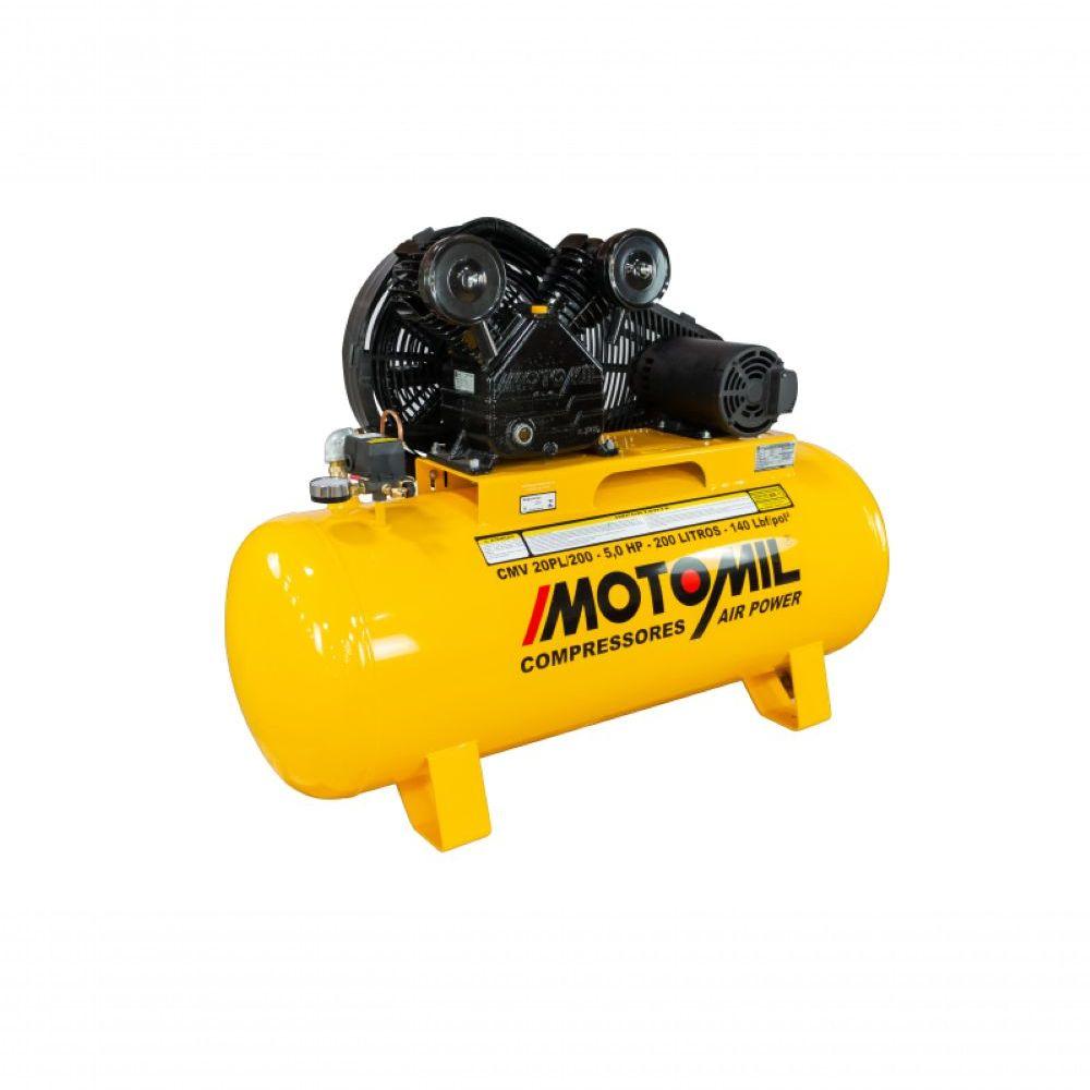 Compressor Air Power Trifásico 220/380v 200l Cmv-20pl/200 MotomilCOMPRESSOR LEVEDados Técnicos:Tensão: 220/380 (Cód.: 380/660Numero de fases: TrifásicoFrequência: 60 HzPotencia do motor: 5 Deslocamento Teórico: 20 pés³/min. ? 566 l/min. de estágios: 1 estagio de pistão: 2 - V de polos: 2 polosPressão de operação (Mínimo): 100 lbf/pol² - 6,9 barPressão de operação (Máximo): 140 lbf/ pol² - 9,7 barRotação da unidade compressora: 1000 rpmVolume de óleo: 750 ml NA