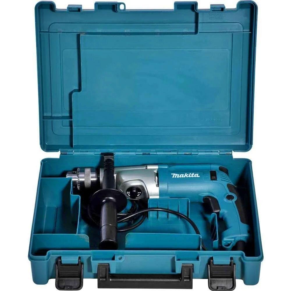 Furadeira De Impacto 20mm 5/8'' 1010w Commaleta Hp2070xCódigo Fornecedor: HP2070X-220VMarca: MakitaEleve suas perfurações a um nível com a Furadeira de Impacto HP2070X-220V da Makita. Com potência de , controle eletrônico de velocidade, partida suave e dupla isolação para maior durabilidade. Esta furadeira possui velocidade variável e rotação reversível, oferecendo controle total. Com 2 velocidades mecânicas e limitador de torque, é perfeita para aplicações em concreto (até 20mm), aço (até 20mm) e madeira (até 40mm). Dimensões compactas de 362 x 220 x 70mm e peso de Acompanha punho lateral, limitador de profundidade e maleta. Tecnologias avançadas: 2 Velocidades Mecânicas, Dupla Isolação, Limitador de Torque. Ideal para Construção Civil e Metal Mecânica. Adquira já e tenha a confiança da Makita em suas mãos. Garantia de 1 ano.Aplicações: Alumínio, Concreto, Diversos, Madeira, Metal, Plástico.Tecnologias: 2 Velocidades Mecânicas, Dupla Isolação, Limitador de Torque.Segmentos: Construção Civil, Metal Mecânica.Especificações Técnicas:Potência: Rotações por minuto:Alta: 0 - Baixa: 0 - Impactos por minuto:Alta: 0 - Baixa: 0 - Capacidades:Concreto: 20mmAço: 20mmMadeira: 40mmDimensões (C x L x A): 362 x 220 x 70mmMandril: 16mmPeso: Emissão de vibrações: 16 m/s²Incerteza K: Itens que Acompanham: Punho lateral, limitador de profundidade e maleta.Garantia: 1 AnoPerfure com precisão e potência. Adquira já a Furadeira de Impacto HP2070X da Makita e tenha a qualidade que seu trabalho merece. Garantia de confiança e durabilidade. Voltagem: 220V | Tensão Elétrica: 220V | Potência: 1010 | Alimentação: Elétrica | Potência da Bateria: 0 | Produto: Furadeira de Impacto | Marca: | Outros acessórios incluídos: | Com função parafusadeira: | Comprimento: | É de empunhadura tipo espada: | Modelo: | Com velocidade variável: | Linha: | Velocidade mínima de rotação: | Tempo de carga da bateria: | Com controle de torque: | Com empunhadura soft grip: | Tamanho do mandril: | Voltagem da bateria: | MPN: | Com função reversa: | Altura: | Com luz LED: | Inclui bateria: | Quantidade de baterias: | Com função percutor: | Capacidade máxima de perfuração em madeira: | Frequência: | Modelo detalhado: | Tipo de bateria: | Torque máximo: | É sem fio: | Amperagem da bateria: | Velocidade máxima de rotação: | Cor principal: | Capacidade máxima de perfuração em metal: | Apresentação: | Inclui carregador: | Peso: | Tipo de tecnologia do motor: | Largura:
