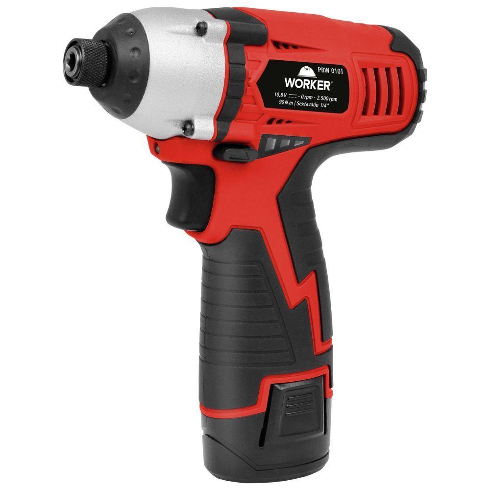 Kit Parafusadeira E Furadeira Bateria 10,8v WorkerCódigo do Fornecedor: 5680Marca: WorkerConteúdo da embalagem: 1 Kit Parafusadeira e Furadeira Bateria 10,8V WorkerO Conjunto Parafusadeira e Furadeira A Bateria 10,8V Worker é um conjunto portátil e versátil que oferece praticidade e eficiência para trabalhos de perfuração e fixação em diversas superfícies. Com bateria recarregável de alta capacidade, possui ajuste de torque e velocidade para garantir maior precisão e segurança durante o uso.Além disso, o conjunto acompanha diversos acessórios, como pontas de parafusos e brocas, permitindo que o usuário realize uma ampla variedade de tarefas. É uma excelente opção para quem busca uma ferramentas profissionais de qualidade e praticidade!Especificações Furadeira:Para fixar e soltar parafusosReversível;Com LED para melhor visibilidade de operação;Marcador de carga da bateriaCabo com revestimento emborrachadoBateria de íons de lítio para alto desempenhoCarregador bivolt automáticoCaracterísticas:Rotação: 0 - 2500rpmTorque: 90 NmTipo de encaixe: 1/4 sextavadoCapacidade do mandril: 0,8mm - 10mmCapacidade de perfuração em madeira: 20mmCapacidade de perfuração em aço: 10mmTensão da bateria: 10,8vEspecificações Parafusadeira:Para soltar e apertar parafusos com até 6mm de diâmetroUtilizada para fazer pequenos furos em madeiras ou metaisCom regulagem de 18 posições de torque e 01 posição para perfuraçãoVelocidade variávelReversívelCom LED para melhor visibilidade na operaçãoCarrregador bivolt automáticoBenefícios:Regulagem para 18 posições de torque e 1 posição para perfuraçãoVelocidade variávelReversívelLED para melhor visibilidade do local de trabalhoCabo com revestimento emborrachadoBateria de íons de lítio que confere alta eficiência de operaçãoCarregador bivolt automáticoGarantia: 3 meses NA