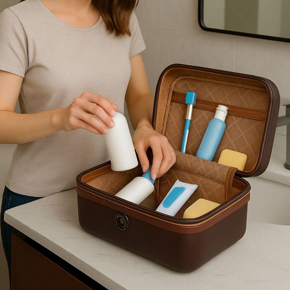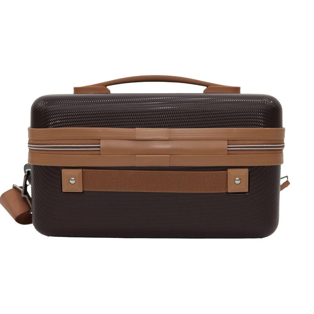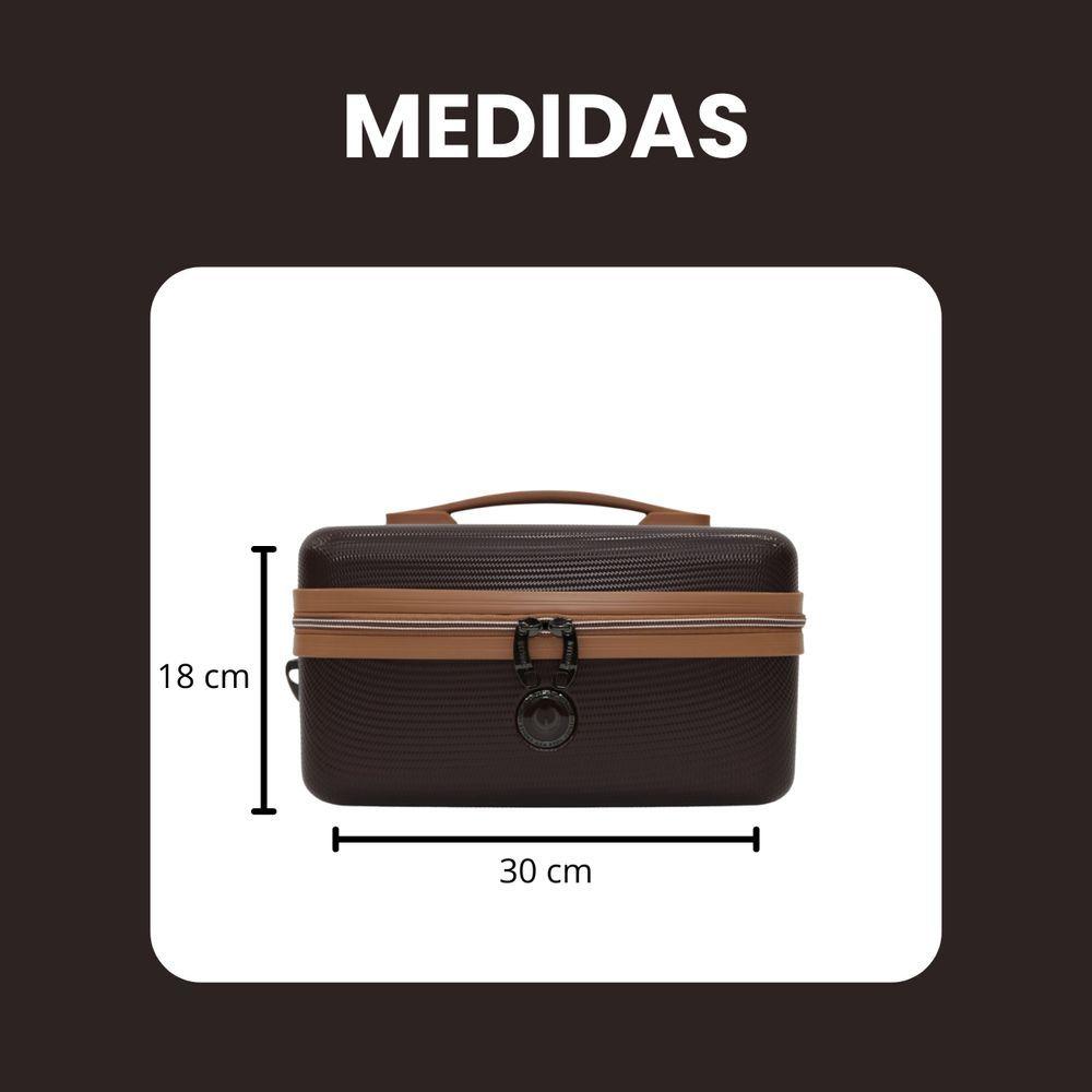 Frasqueira De Viagem Necessaire Baú Porta Jóias E Maquiagem - Havana - Intract ChocolatePrincipais Benefícios da Frasqueira Intract em ABSMaterial ABS de Alta ResistênciaProduzida em ABS rígido, a frasqueira oferece proteção contra impactos, arranhões e umidade, mantendo seus itens sempre seguros.Design Moderno e Acabamento PremiumElegante e sofisticada, combina perfeitamente com malas de viagem de diversas marcas e estilos.Alça Transversal AjustávelPermite carregar com total conforto no ombro, deixando as mãos livres para maior mobilidade.Alça Superior ReforçadaIdeal para uso rápido e transporte manual seguro.Elástico Traseiro para Acoplar em MalasFacilita o transporte acoplado ao carrinho da mala, reduzindo esforço e proporcionando praticidade em longos trajetos.Interior Espaçoso e OrganizadoCompartimentos internos, elástico fixador e divisórias que mantêm tudo no lugar, evitando bagunça durante a viagem.Leve e CompactaEstrutura leve, fácil de carregar e perfeita para quem não quer excesso de peso na bagagem.Ideal para Diversos UsosCosméticos, maquiagens, medicamentos, acessórios pessoais, itens de higiene, câmera, carregadores, objetos delicados e muito mais.Características TécnicasMaterial: ABS rígido de alta resistênciaAlça: Transversal ajustável + alça superior reforçadaEstrutura: Rígida, leve e resistente a impactosInterior: Forrado, com bolso e elástico organizadorBase: Apoios inferiores para maior estabilidadeUso ideal: Cosméticos, maquiagem, acessórios, itens pessoais e higieneCompatível com malas de diversas marcasEstilo: Moderno e premiumEspecificaçõesDimensões totais com alça (AxLxP): (18 x 30 x 18cm) - 14 polegadasCapacidade em volume: 8 litrosPeso líquido: 600 g