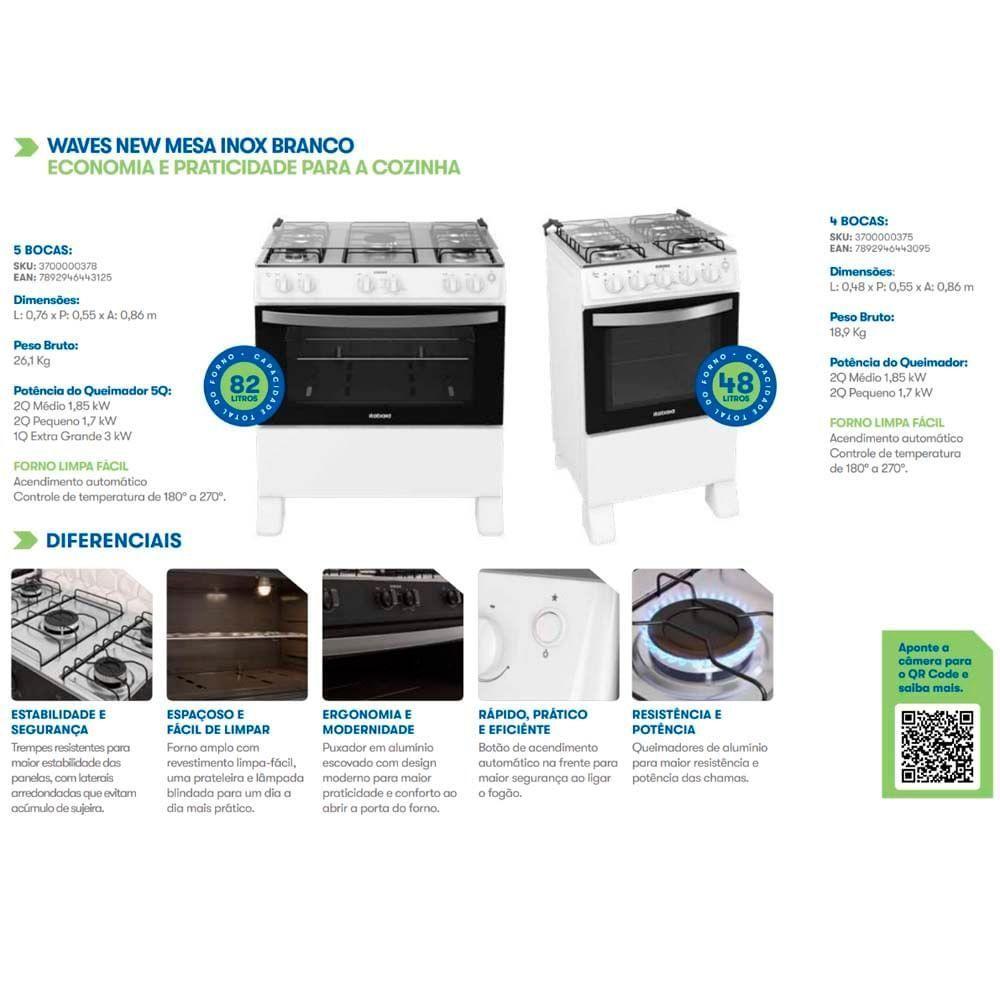 Fogão Waves New 4 Bocas Branco Itatiaia Bivolt