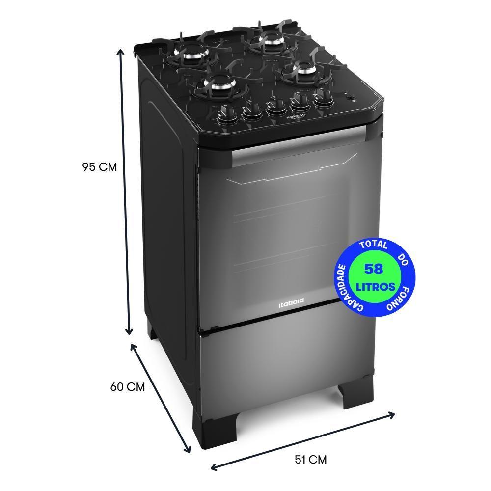 Fogão Itatiaia Itamaster 4 Bocas Preto/Reflecta Bivolt