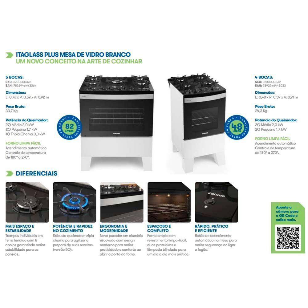 Fogão Itatiaia Itaglass Plus 5 Bocas Branco Bivolt