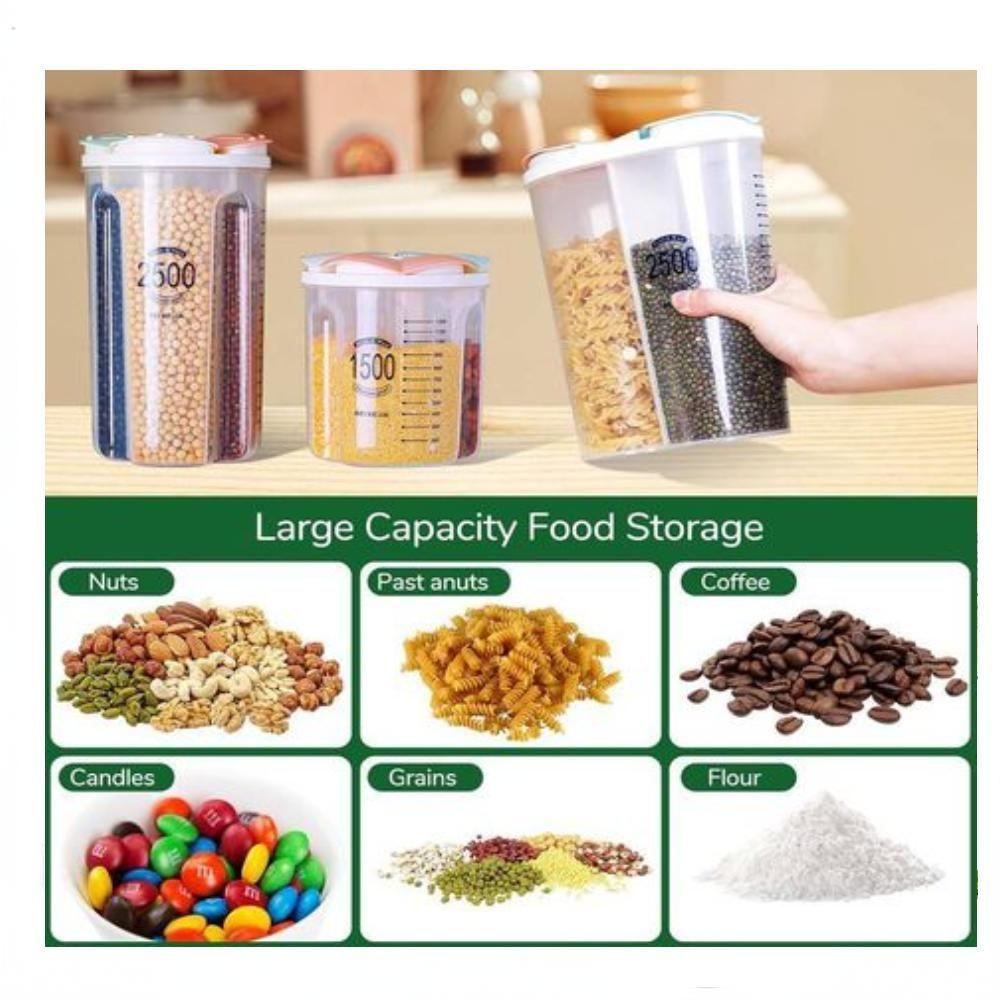 Porta Mantimentos Triplo Pote Alimentos 3 Em 1 Divisorias Dispenser Lavanderia Sabao Em Pó Medidor Sucrilhos Graos Multi