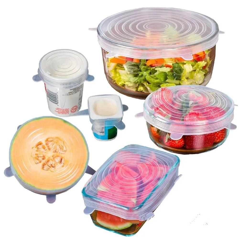 Kit 6 Tampas Ajustaveis Silicone Flexivel Potes Panelas Kit Jogo Latas Tampa Redonda Quadrada Universal Lavavel Reutiliz
