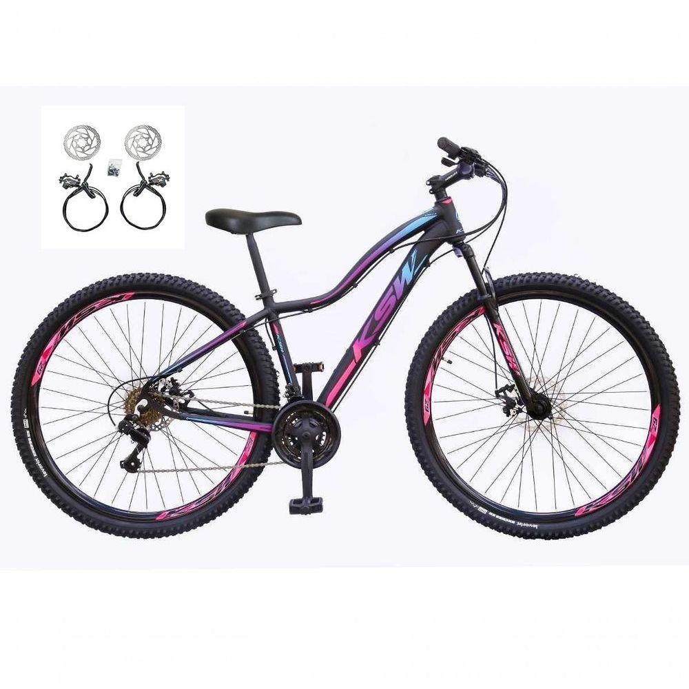 Bicicleta Aro 29 Ksw Mwza Feminina Alumínio 21v Freio Hidraulico Garfo Suspensão Mtb preto-pink-Azul Tam: 17