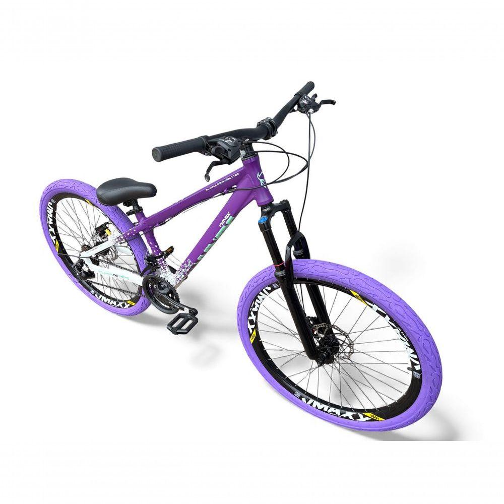 Bicicleta Aro 26 Vikingx Tuff Câmbios Shimano Freio Hidráulico 21v Freeride Aro Vmaxx Flame Roxo-Branco X44