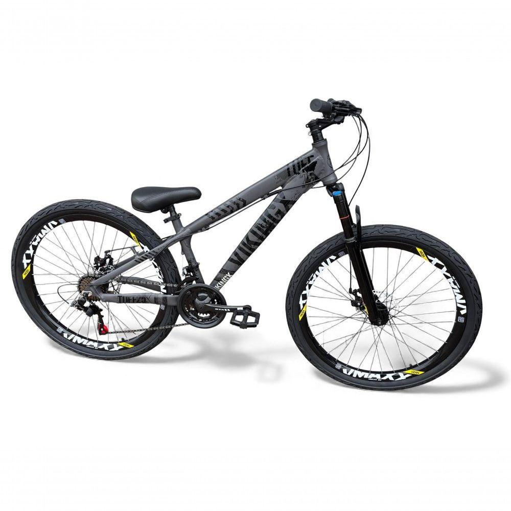 Bicicleta Aro 26 Vikingx Tuff Freeride 21v Aro Vmaxx Freio A Disco Garfo Suspensão Pneu Flame Cinza-Preto X25
