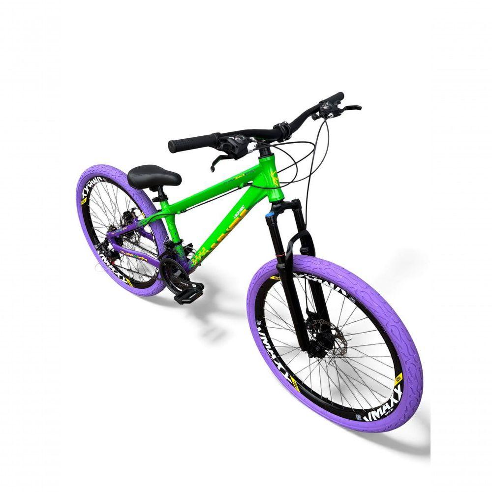 Bicicleta Aro 26 Vikingx Tuff Câmbios Shimano Freio Hidráulico 21v Freeride Aro Vmaxx Flame Verde-Roxo X44
