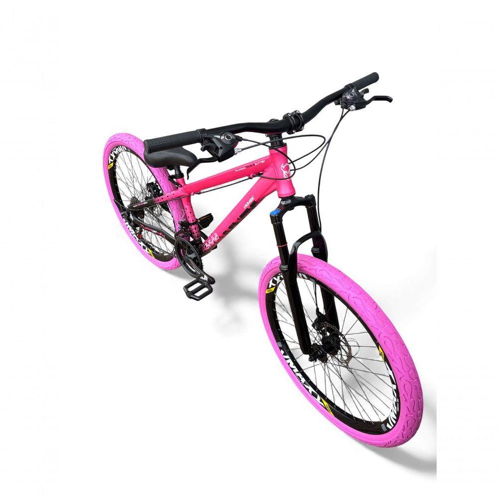 Bicicleta Aro 26 Vikingx Tuff Câmbios Shimano 21v Freeride Freio A Disco Aro Vmaxx Pneu Flame Rosa-Preto X44