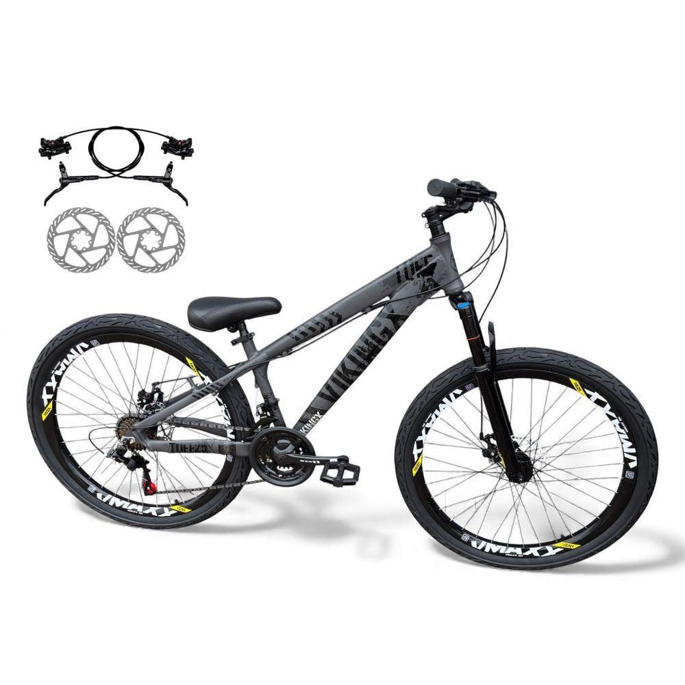 Bicicleta Aro 26 Vikingx Tuff Freio Hidráulico 21v Freeride Rodas Vmaxx Suspensão Pneu Flame Cinza-Preto X25
