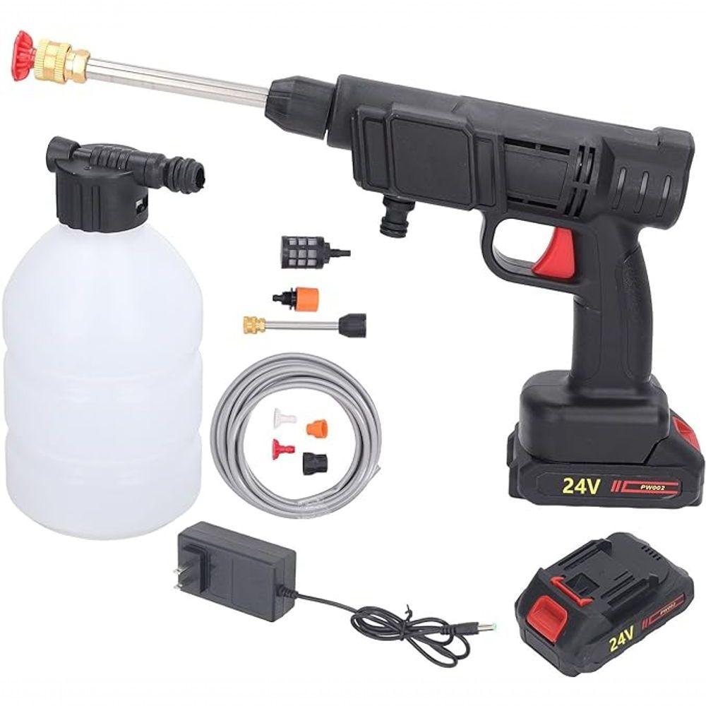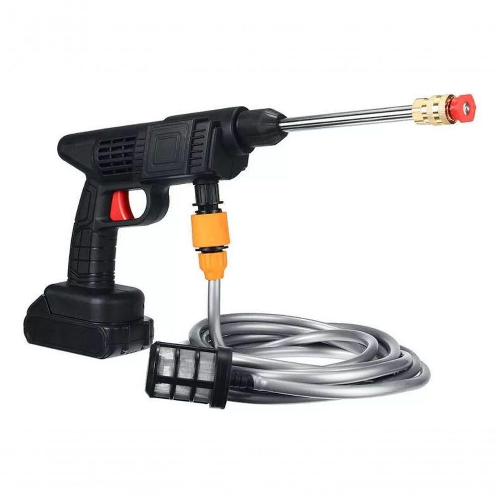Lavadora Alta Pressão Portátil Recarregável Pistola VeicularApesar de ser sem fio, essa lavadora uma pressão surpreendentemente forte, capaz de remover sujeira incrustada, musgo e manchas difíceis em segundos. Com seu design ergonômico e compacto, o manuseio é confortável e fácil, permitindo que você limpe diversas superfícies com facilidade.Além disso, essa lavadora de pressão vem com uma variedade de acessórios, como bicos de pulverização ajustáveis e escova de limpeza, que permitem que você adapte a lavadora às suas necessidades específicas. Desde limpar calçadas até lavar carros e móveis de jardim, essa lavadora é versátil e eficiente em diversas tarefas de limpeza.Com um sistema de desligamento automático para economizar energia e garantir a durante o uso, você pode usar essa lavadora com tranquilidade.Além disso, ela é ecologicamente correta, ajudando a reduzir o desperdício de recursos e economizando água e energia.Com um simples abastecimento do reservatório de água e escolha do acessório correto, você está pronto para começar a limpar. Mesmo para iniciantes, o uso é fácil e descomplicado, permitindo que você domine sua operação em questão de minutos.Especificações:Tensão da Bateria: 21V.Material: Plástico ABS + Componentes Eletrôência: ão do Carregador: 110v/220v 50 hz/ de Carga: 3 horas.Tamanho da Mangueira de Acoplar: 4 de metal de alta pressã níveis de Pressão: Desde lavar carros até regar de Fluxo de Água: 4 litros/ de Embalagem:1 Pistola Lavadora de Alta Pressão1 Tubo de entrada de água1 Reservatório1 Filtro1 Conector de água1 Bico em forma de leque1 Bico de alta pressão linear1 Cano de pistola de água1 Bateria de lítio1 CarregadorA Lavadora de Pressão Sem Fio com Bateria Portátil é a escolha ideal para quem busca praticidade, eficiência e liberdade na hora da limpeza. Com ela, suas tarefas de limpeza serão mais fáceis e rápidas, garantindo que suas superfícies brilhem novamente em pouco tempo.