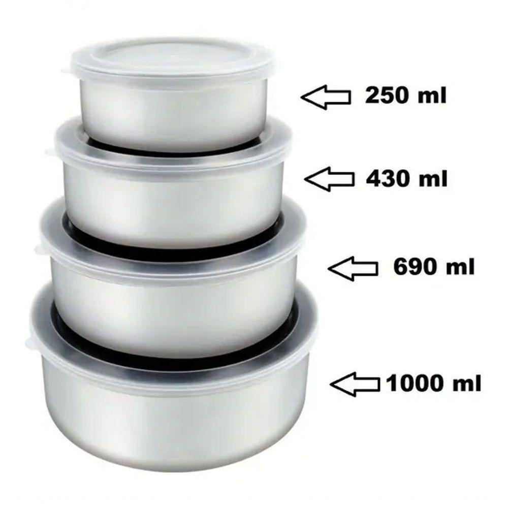 Conjunto Potes Aço Inox Tampa Hermética Tigelas 4 PeçasO Conjunto de Potes de Aço Inox com Tampa Hermética – 4 Peças é a escolha perfeita para quem busca praticidade, resistência e elegância na cozinha.Material de alta qualidade: aço inox durável, resistente e fácil de higienizar.Tampas herméticas: garantem vedação perfeita, preservando aroma, sabor e textura dos alimentos.Versatilidade: ideais para armazenar, misturar, servir e transportar alimentos.Design moderno e funcional: combina praticidade no dia a dia com acabamento sofisticado.Diferentes tamanhos: potes em medidas , perfeitos para múltiplas utilidades.Medidas aproximadas (Altura x Diâmetro):Tigela 1: 3,7 x 10 cmTigela 2: 4 x 12 cmTigela 3: 4,5 x 14 cmTigela 4: 5 x 16 cmConteúdo da embalagem:4 potes de inox com tampa herméticaDuráveis, elegantes e higiênicos, esses potes são indispensáveis para manter sua cozinha organizada e seus alimentos sempre frescos.O Conjunto de Potes de Aço Inox com Tampa Hermética – 4 Peças é a escolha perfeita para quem busca praticidade, resistência e elegância na cozinha.Material de alta qualidade: aço inox durável, resistente e fácil de higienizar.Tampas herméticas: garantem vedação perfeita, preservando aroma, sabor e textura dos alimentos.Versatilidade: ideais para armazenar, misturar, servir e transportar alimentos.Design moderno e funcional: combina praticidade no dia a dia com acabamento sofisticado.Diferentes tamanhos: potes em medidas , perfeitos para múltiplas utilidades.Medidas aproximadas (Altura x Diâmetro):Tigela 1: 3,7 x 10 cmTigela 2: 4 x 12 cmTigela 3: 4,5 x 14 cmTigela 4: 5 x 16 cmConteúdo da embalagem:4 potes de inox com tampa herméticaDuráveis, elegantes e higiênicos, esses potes são indispensáveis para manter sua cozinha organizada e seus alimentos sempre frescos.