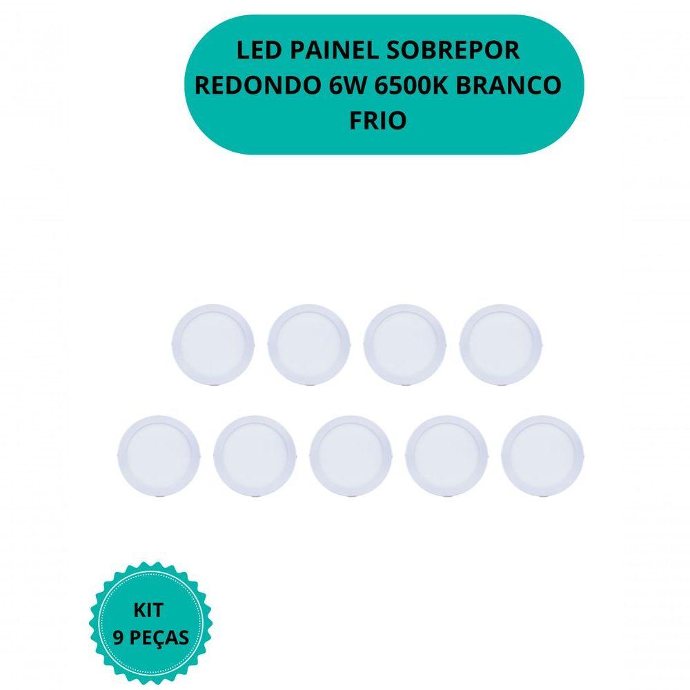 Plafon Led Sobrepor 6w Redondo 6500k Branco Frio Bivolt - Kit Com 9 Un.