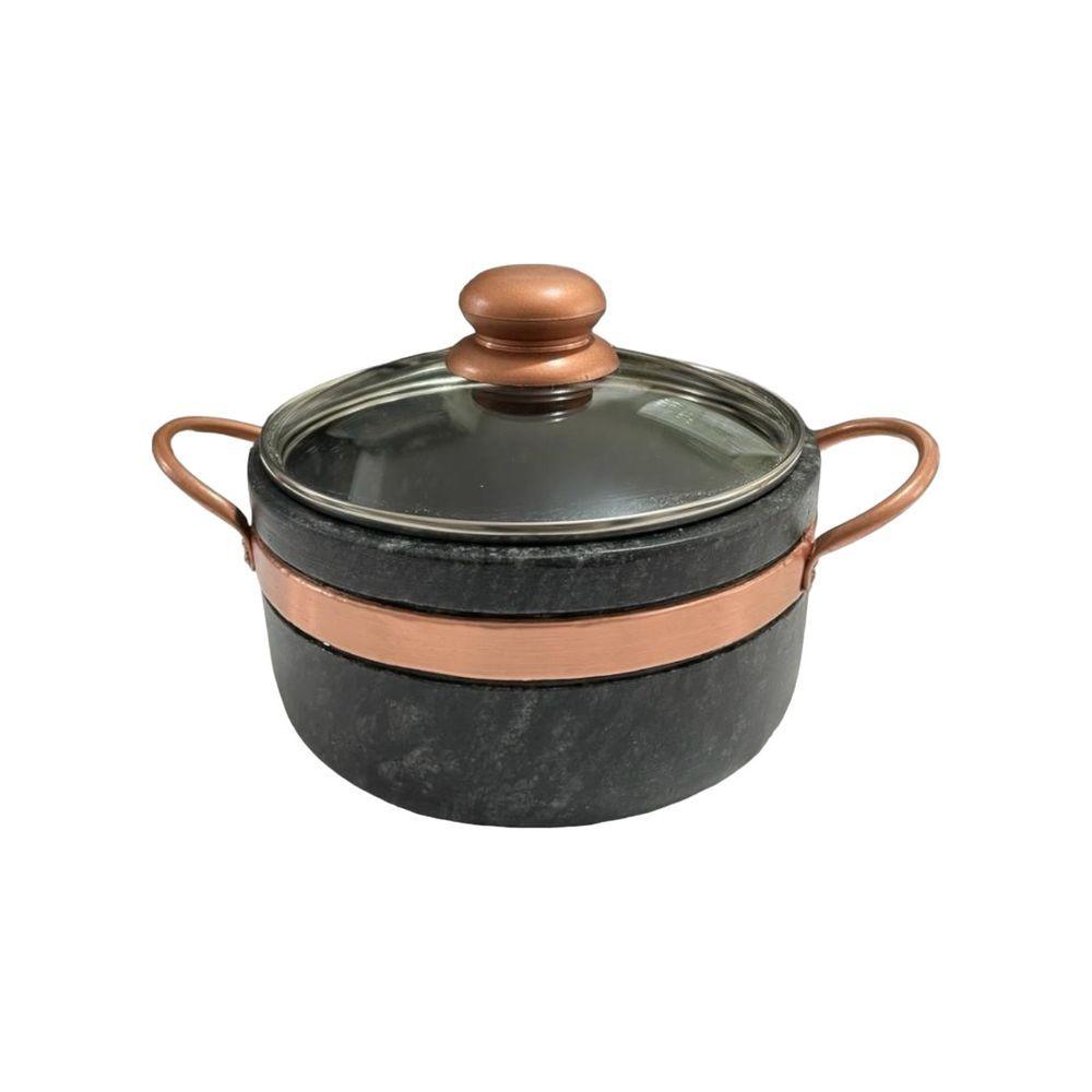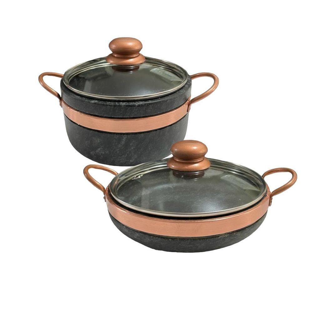 Frigideira + Panela De Pedra Sabão Com Tampas De Vidro Com Pegador Exclusivo