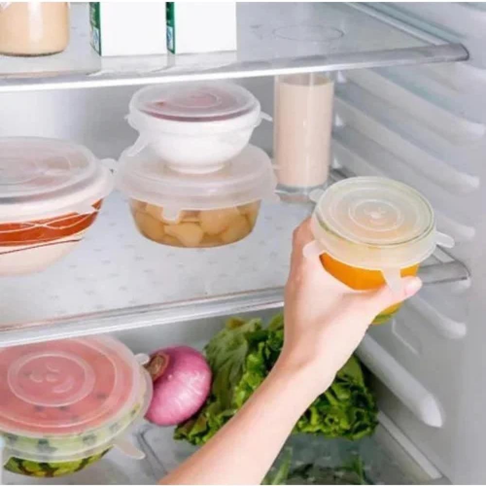 Kit 6 Tampas Ajustaveis Silicone Flexivel Potes Panelas Kit Jogo Latas Tampa Redonda Quadrada Universal Lavavel Reutiliz