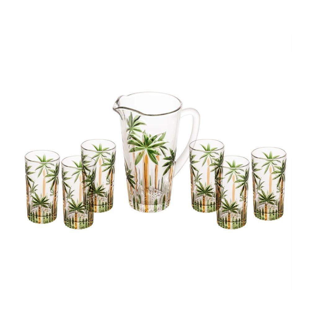 Conjunto Jarra 6 Copos Palm Tree Handpaint Cristal - Wolff