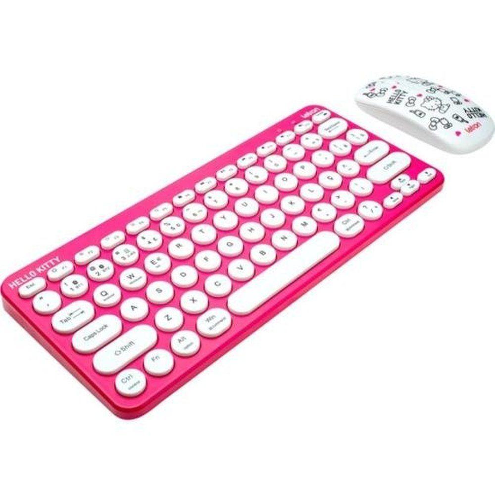 Kit Teclado E Mouse Sem Fio Letron Hello Kitty Rosa