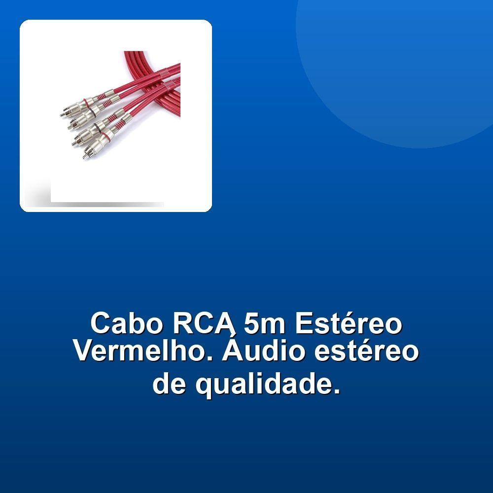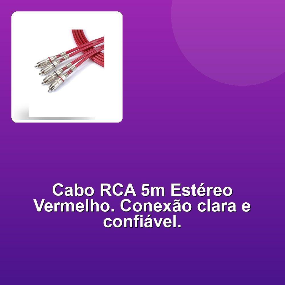 Cabo Santo Angelo Rca 5m Estéreo VermelhoDescubra a combinação perfeita entre qualidade, durabilidade e desempenho com o Cabo Santo Angelo RCA Paredão 5 Metros Estéreo Vermelho. Este cabo foi projetado para oferecer uma experiência de áudio superior, garantindo que cada som seja transmitido com clareza e precisão. Com 5 metros de comprimento, ele é ideal para conectar equipamentos mesmo em configurações de maior distância, proporcionando versatilidade e praticidade em seu uso.Fabricado com materiais de alta qualidade, o Cabo Santo Angelo se destaca pelo acabamento robusto e pela resistência ao desgaste, características que o tornam uma escolha confiável tanto para uso profissional quanto doméstico. A cor vermelha vibrante não só facilita a identificação rápida em ambientes com muitos equipamentos, como também adiciona um toque de estilo ao seu setup.O desempenho técnico é um dos grandes diferenciais deste cabo. Ele oferece uma conexão RCA estéreo eficiente, permitindo que você aproveite uma transmissão de áudio sem ruídos ou interferências indesejadas. Seja para sistemas de som, mesas de mixagem ou outros dispositivos, o Cabo Santo Angelo é projetado para entregar o mais alto nível de fidelidade sonora.Por trás deste produto, há o compromisso de nossa equipe em oferecer a você não apenas um item funcional, mas uma solução que reflete excelência. Cada cabo é escolhido com o máximo rigor, garantindo que você receba um produto confiável, duradouro e que atenda às suas expectativas. Além disso, nos empenhamos para que sua experiência de compra seja ágil e satisfatória, desde o momento do pedido até a entrega.Escolher o Cabo Santo Angelo RCA Paredão é optar por qualidade, tecnologia e paixão por detalhes que fazem a diferença. Invista em um produto que você pode confiar, sabendo que ele foi projetado para superar os desafios do dia a dia e proporcionar resultados excepcionais.Descubra a combinação perfeita entre qualidade, durabilidade e desempenho com o Cabo Santo Angelo RCA Paredão 5 Metros Estéreo Vermelho. Este cabo foi projetado para oferecer uma experiência de áudio superior, garantindo que cada som seja transmitido com clareza e precisão. Com 5 metros de comprimento, ele é ideal para conectar equipamentos mesmo em configurações de maior distância, proporcionando versatilidade e praticidade em seu uso.Fabricado com materiais de alta qualidade, o Cabo Santo Angelo se destaca pelo acabamento robusto e pela resistência ao desgaste, características que o tornam uma escolha confiável tanto para uso profissional quanto doméstico. A cor vermelha vibrante não só facilita a identificação rápida em ambientes com muitos equipamentos, como também adiciona um toque de estilo ao seu setup.O desempenho técnico é um dos grandes diferenciais deste cabo. Ele oferece uma conexão RCA estéreo eficiente, permitindo que você aproveite uma transmissão de áudio sem ruídos ou interferências indesejadas. Seja para sistemas de som, mesas de mixagem ou outros dispositivos, o Cabo Santo Angelo é projetado para entregar o mais alto nível de fidelidade sonora.Por trás deste produto, há o compromisso de nossa equipe em oferecer a você não apenas um item funcional, mas uma solução que reflete excelência. Cada cabo é escolhido com o máximo rigor, garantindo que você receba um produto confiável, duradouro e que atenda às suas expectativas. Além disso, nos empenhamos para que sua experiência de compra seja ágil e satisfatória, desde o momento do pedido até a entrega.Escolher o Cabo Santo Angelo RCA Paredão é optar por qualidade, tecnologia e paixão por detalhes que fazem a diferença. Invista em um produto que você pode confiar, sabendo que ele foi projetado para superar os desafios do dia a dia e proporcionar resultados excepcionais.
