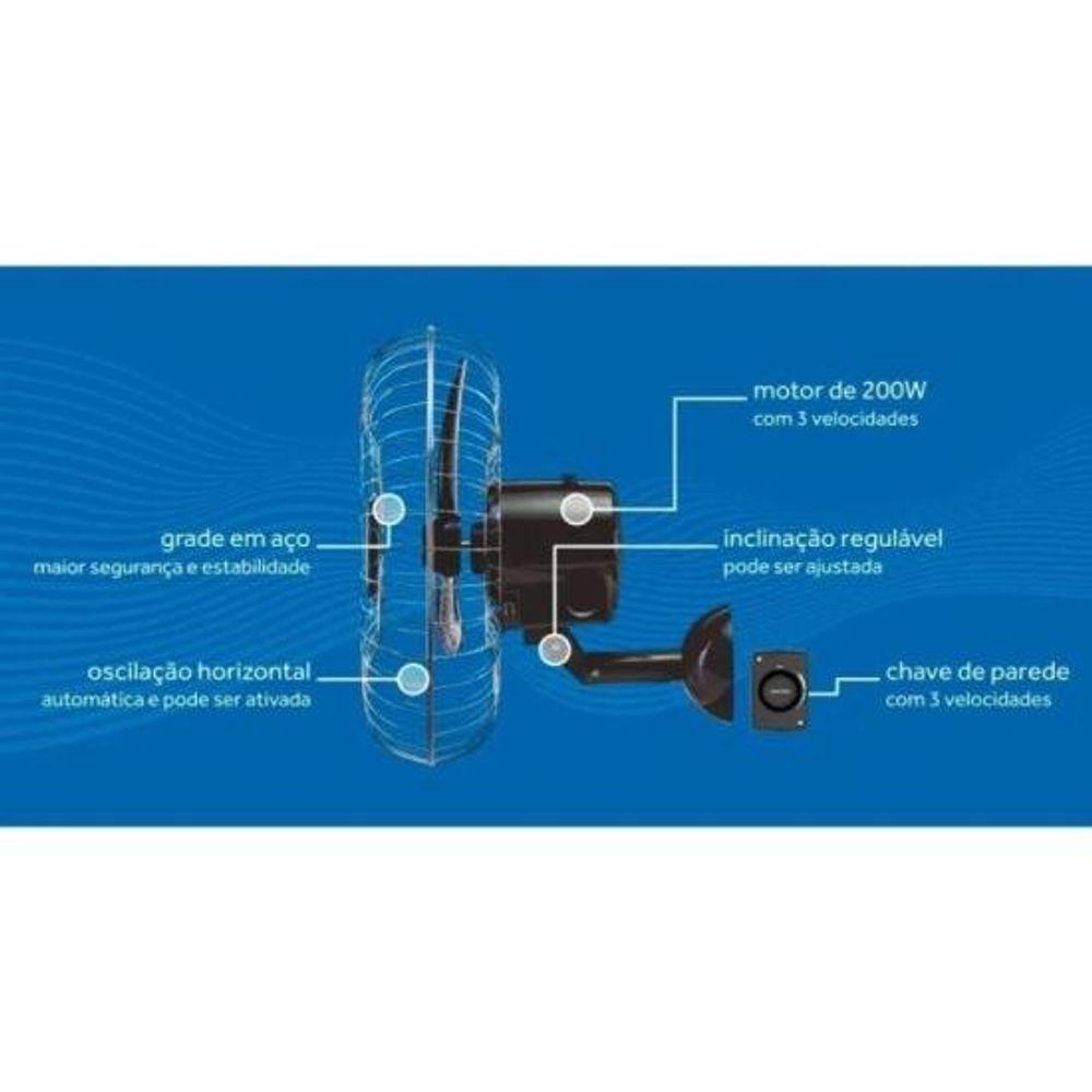Ventilador De Parede Ventisol Oscilante 50cm Aço Preto Bivolt