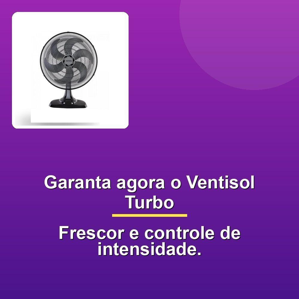 Ventisol Ventilador Turbo 50cm Preto 127vO Ventilador de Mesa Ventisol Turbo 6 preto 50cm é a solução ideal para você se refrescar e aproveitar momentos agradáveis em casa.Com um design moderno e arrojado, este ventilador conta com uma base robusta que garante maior estabilidade, proporcionando segurança e tranquilidade durante o uso. Seu motor turbo de alta performance oferece excelente potência, gerando uma ventilação intensa sem comprometer o silêncio. A hélice de 6 pás, com nova aerodinâmica, foi especialmente projetada para maximizar a vazão de ar, proporcionando um conforto irresistível.Controle a intensidade da brisa com o ajuste de três velocidades, situado na própria capa protetora do motor. A tecnologia Wind-line presente na grade garante melhor direcionamento e vazão de ar, te proporcionando o frescor exatamente onde você precisa. A ventilação pode ser ainda mais personalizada com a oscilação horizontal automática, que distribui o ar por toda a ambiente, ou a inclinação manual para direcionar o fluxo de ar conforme a sua preferência.Com economia de energia, o Ventisol Turbo 6 possui a classificação Classe A no INMETRO, refletindo seu compromisso com a sustentabilidade. Sua praticidade também se destaca com o suporte de parede integrado, permitindo que o ventilador seja utilizado no chão, na mesa ou na parede, adaptando-se a diferentes necessidades e espaços.O Ventilador de Mesa Ventisol Turbo 6 preto 50cm é a solução ideal para você se refrescar e aproveitar momentos agradáveis em casa.Com um design moderno e arrojado, este ventilador conta com uma base robusta que garante maior estabilidade, proporcionando segurança e tranquilidade durante o uso. Seu motor turbo de alta performance oferece excelente potência, gerando uma ventilação intensa sem comprometer o silêncio. A hélice de 6 pás, com nova aerodinâmica, foi especialmente projetada para maximizar a vazão de ar, proporcionando um conforto irresistível.Controle a intensidade da brisa com o ajuste de três velocidades, situado na própria capa protetora do motor. A tecnologia Wind-line presente na grade garante melhor direcionamento e vazão de ar, te proporcionando o frescor exatamente onde você precisa. A ventilação pode ser ainda mais personalizada com a oscilação horizontal automática, que distribui o ar por toda a ambiente, ou a inclinação manual para direcionar o fluxo de ar conforme a sua preferência.Com economia de energia, o Ventisol Turbo 6 possui a classificação Classe A no INMETRO, refletindo seu compromisso com a sustentabilidade. Sua praticidade também se destaca com o suporte de parede integrado, permitindo que o ventilador seja utilizado no chão, na mesa ou na parede, adaptando-se a diferentes necessidades e espaços.