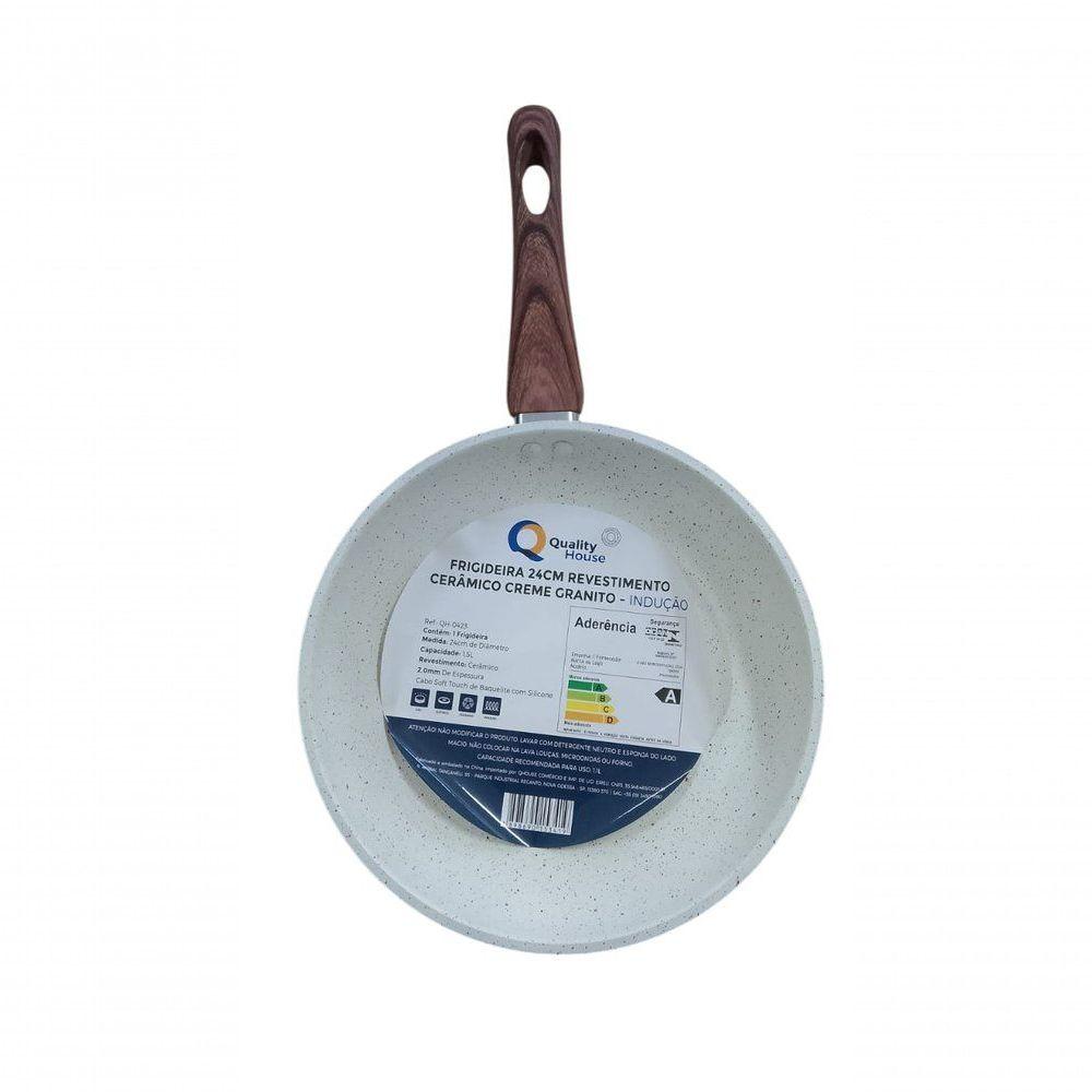 Frigideira Antiaderente Cerâmica 24cm Indução Gás Sem óleoFrigideira com Revestimento Cerâmico Antiaderente 24cm – Beleza, Desempenho e Versatilidade na Sua CozinhaTransforme sua rotina na cozinha com a Frigideira com Revestimento Cerâmico 24cm, ideal para quem busca qualidade, resistência e praticidade no preparo das refeições do dia a dia. Seu revestimento cerâmico antiaderente garante cozimento uniforme, evita que os alimentos grudem e facilita a limpeza, proporcionando mais eficiência e conforto no uso diário.Com capacidade de 1,5 litros e espessura de 2,0 mm, essa frigideira oferece excelente condução de calor, permitindo preparar receitas com mais precisão, seja para grelhar, fritar, refogar ou selar alimentos. É perfeita para quem deseja cozinhar com menos óleo, mantendo o sabor e a textura dos alimentos.O cabo ergonômico em baquelite com acabamento soft touch e silicone proporciona firmeza, segurança e conforto durante o manuseio, além de ser resistente ao calor. Seu design moderno, na elegante cor bege com acabamento marmorizado, valoriza a cozinha e combina funcionalidade com sofisticação.Compatível com fogão a gás, fogão elétrico, cooktop cerâmico e fogão por indução, essa frigideira é extremamente versátil e se adapta a diferentes tipos de preparo, sendo uma excelente escolha tanto para o uso doméstico quanto para quem busca um utensílio prático e eficiente.Principais Benefícios- Revestimento cerâmico antiaderente de alta performance- Cozimento uniforme e maior durabilidade- Ideal para preparo com pouco ou nenhum óleo- Cabo ergonômico confortável e seguro- Fácil de limpar e resistente ao uso diário- Compatível com fogões a gás, elétricos, cerâmicos e induçãoCaracterísticas do Produto- Compatível com fogão a gás- Compatível com fogão elétrico- Compatível com cooktop cerâmico- Compatível com fogão por induçãoEspecificações Técnicas- Diâmetro: 24 cm- Capacidade: 1,5 litros- Espessura: 2,0 mm- Material do revestimento: Cerâmico- Material do cabo: Baquelite com silicone- Cor: Bege- Peso: 490 g- Registro INMETRO: 0005650/2024Conteúdo da Embalagem- 01 Frigideira com Revestimento Cerâmico – BegeFrigideira com Revestimento Cerâmico Antiaderente 24cm – Beleza, Desempenho e Versatilidade na Sua CozinhaTransforme sua rotina na cozinha com a Frigideira com Revestimento Cerâmico 24cm, ideal para quem busca qualidade, resistência e praticidade no preparo das refeições do dia a dia. Seu revestimento cerâmico antiaderente garante cozimento uniforme, evita que os alimentos grudem e facilita a limpeza, proporcionando mais eficiência e conforto no uso diário.Com capacidade de 1,5 litros e espessura de 2,0 mm, essa frigideira oferece excelente condução de calor, permitindo preparar receitas com mais precisão, seja para grelhar, fritar, refogar ou selar alimentos. É perfeita para quem deseja cozinhar com menos óleo, mantendo o sabor e a textura dos alimentos.O cabo ergonômico em baquelite com acabamento soft touch e silicone proporciona firmeza, segurança e conforto durante o manuseio, além de ser resistente ao calor. Seu design moderno, na elegante cor bege com acabamento marmorizado, valoriza a cozinha e combina funcionalidade com sofisticação.Compatível com fogão a gás, fogão elétrico, cooktop cerâmico e fogão por indução, essa frigideira é extremamente versátil e se adapta a diferentes tipos de preparo, sendo uma excelente escolha tanto para o uso doméstico quanto para quem busca um utensílio prático e eficiente.Principais Benefícios- Revestimento cerâmico antiaderente de alta performance- Cozimento uniforme e maior durabilidade- Ideal para preparo com pouco ou nenhum óleo- Cabo ergonômico confortável e seguro- Fácil de limpar e resistente ao uso diário- Compatível com fogões a gás, elétricos, cerâmicos e induçãoCaracterísticas do Produto- Compatível com fogão a gás- Compatível com fogão elétrico- Compatível com cooktop cerâmico- Compatível com fogão por induçãoEspecificações Técnicas- Diâmetro: 24 cm- Capacidade: 1,5 litros- Espessura: 2,0 mm- Material do revestimento: Cerâmico- Material do cabo: Baquelite com silicone- Cor: Bege- Peso: 490 g- Registro INMETRO: 0005650/2024Conteúdo da Embalagem- 01 Frigideira com Revestimento Cerâmico – Bege