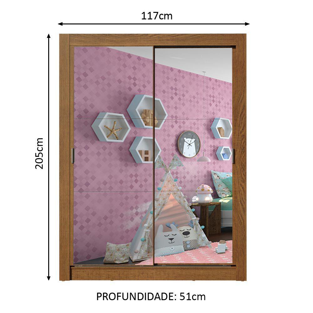Para um dormitório mais aconchegante e organizado para as crianças, a aposta é o Guarda-roupa Infantil Enzo da Madesa.São duas portas de correr com deslizamento suave, que facilitam muito no dia a dia, por ocuparem menos espaço. Alguns dos principais diferenciais são: trilhos em alumínio, dobradiças metálicas e ferragens de qualidade que proporcionam melhor sustentação ao móvel.Na parte interna, o espaço é muito bom, com duas prateleiras e três nichos, além de um cabideiro de metal resistente e de tamanho diferenciado, 105 cm.O acabamento interno e externo é no padrão amadeirado Rustic. As costas possuem acabamento branco. O processo é feito em Pintura Poliéster de alta resistência, que confere maior qualidade e durabilidade ao produto.Medidas totais do guarda-roupa: 205 cm de altura x 117 cm de largura x 51 cm de profundidade.Imagens meramente ilustrativas.Itens inclusos:- Um (1) cabideiro metálico grande- Duas (2) prateleiras e quatro (4) nichos- Duas (2) portas de correr com espelhos e puxadores em PVCCódigo do produto: XA10945Z2EObs.: A Madesa não disponibiliza serviço de montagem. O produto segue com manual de instalação e todas as ferragens necessárias para sua montagem.1-O produto é novo ou usado?R.: Todos os produtos da Madesa são novos, enviados da nossa fábrica diretamente para as casas de nossos clientes.2-O produto vem montado? Se não, vocês realizam a montagem?R.: A Madesa não disponibiliza serviço de montagem. Todos os produtos seguem com manual de instalação e as ferragens necessárias. Alguns produtos possuem vídeo explicando o passo a passo da montagem.3-Vocês possuem loja física? Posso retirar meu produto em mãos?R.: Não possuímos loja física, apenas loja virtual. Confira as opções de envio ao colocar o seu CEP.4-Qual é o valor do envio? Posso pagar separadamente?R.: O valor do envio é calculado com base no peso e volume do produto, e no CEP de destino. Você pode calcular o valor e prazo de entrega no simulador.5-A Madesa entrega em todo Brasil? Como é feita a entrega?R.: Sim, entregamos no Brasil inteiro através de transportadoras parceiras.6-O produto acompanha Nota Fiscal?R.: Sim, todos os produtos são entregues com suas respectivas notas fiscais.7-Os produtos possuem garantia?R.: Sim. A Madesa oferece 3 meses de garantia para defeitos de fabricação.A Madesa se dedica à sustentabilidade com várias iniciativas: temos uma usina própria para gerar energia que abastece uma de nossas fábricas. Selecionamos nossos fornecedores, priorizando aqueles que possuem um compromisso com a sustentabilidade e proteção do meio ambiente. Todo o plástico utilizado no setor produtivo é proveniente de reciclagem e as suas sobras são encaminhadas ao fornecedor que os recicla. Também investimos no desenvolvimento contínuo de nossos colaboradores e em ações educacionais que beneficiem a comunidade.