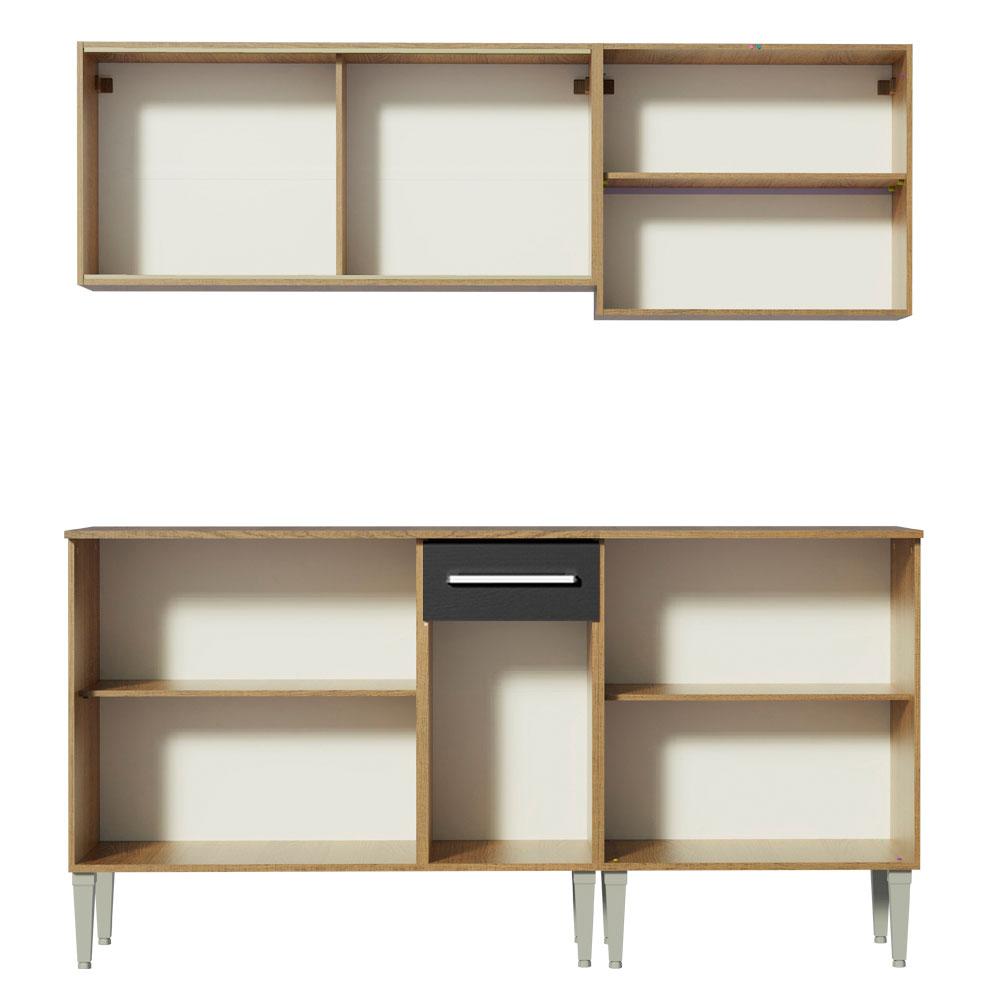 A Cozinha Completa Emilly Box tem espaço para tudo. São dois balcões e dois armários aéreos que permitem uma melhor organização de talheres, louças e demais utensílios de cozinha.Um dos grandes destaques é o armário aéreo maior, que possui duas portas de correr de vidro no estilo miniboreal, um detalhe que traz muita sofisticação e elegância à sua cozinha.Todos os módulos são separados e podem ser montados conforme a necessidade do espaço. Além disso, são fabricados com materiais de qualidade, como puxadores com detalhe em alumínio e corrediças e dobradiças metálicas.Para completar, ambos os balcões possuem tampo em MDP e contam com pés reguláveis em PVC, que facilitam a limpeza e podem ser ajustados para nivelar pequenas imperfeições no piso.O acabamento da estrutura é no padrão amadeirado Rustic e as portas e frente são pretas. As partes internas das costas e da gaveta são brancas. O processo é feito em Pintura Poliéster ecológica com 7 camadas de proteção, que oferecem resistência contra os efeitos da água e do calor.Medidas totais: 186 cm de altura x 169 cm de largura x 44 cm profundidade nos balcões e 27 cm nos aéreos.(Imagens meramente ilustrativas: a decoração não acompanha o produto. Os armários aéreos precisam ser fixados na parede.)Itens inclusos:- Um (1) Armário Aéreo com duas (2) portas em vidro e dois (2) nichos internos- Um (1) Balcão com três (3) portas, uma (1) gaveta e tampo- Um (1) Armário Aéreo com uma (1) prateleira interna e duas (2) portas- Um (1) Balcão com duas (2) portas e tampoCódigo do produto: XAGREM1690037KObs.: A Madesa não disponibiliza serviço de montagem. O produto segue com manual e todas as ferragens necessárias para a instalação.1 – O produto é novo ou usado?R.: Todos os produtos da Madesa são novos, enviados da nossa fábrica diretamente para as casas de nossos clientes.2 – O produto vem montado? Se não, vocês realizam a montagem?R.: A Madesa não disponibiliza serviço de montagem. Todos os produtos seguem com manual de instalação e as ferragens necessárias. Alguns produtos possuem vídeo explicando o passo a passo da montagem.3 – Vocês possuem loja física? Posso retirar meu produto em mãos?R.: Não possuímos loja física, apenas loja virtual. Confira as opções de envio ao colocar o seu CEP.4 – Qual é o valor do envio? Posso pagar separadamente?R.: O valor do envio é calculado com base no peso e volume do produto, e no CEP de destino. Você pode calcular o valor e prazo de entrega no simulador.5 – A Madesa entrega em todo Brasil? Como é feita a entrega?R.: Sim, entregamos no Brasil inteiro através de transportadoras parceiras.6 – O produto acompanha Nota Fiscal?R.: Sim, todos os produtos são entregues com suas respectivas notas fiscais.7 – Os produtos possuem garantia?R.: Sim. A Madesa oferece 3 meses de garantia para defeitos de fabricação.A Madesa se dedica à sustentabilidade com várias iniciativas: temos uma usina própria para gerar energia que abastece uma de nossas fábricas. Selecionamos nossos fornecedores, priorizando aqueles que possuem um compromisso com a sustentabilidade e proteção do meio ambiente. Todo o plástico utilizado no setor produtivo é proveniente de reciclagem e as suas sobras são encaminhadas ao fornecedor que os recicla. Também investimos no desenvolvimento contínuo de nossos colaboradores e em ações educacionais que beneficiem a comunidade.