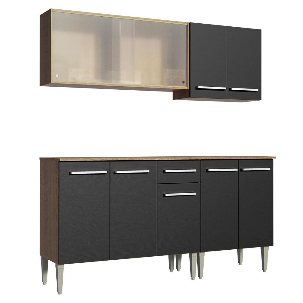 Armário de Cozinha Completa Madesa Emilly Box com Balcão e Aéreo Vidro - Rustic/Preto