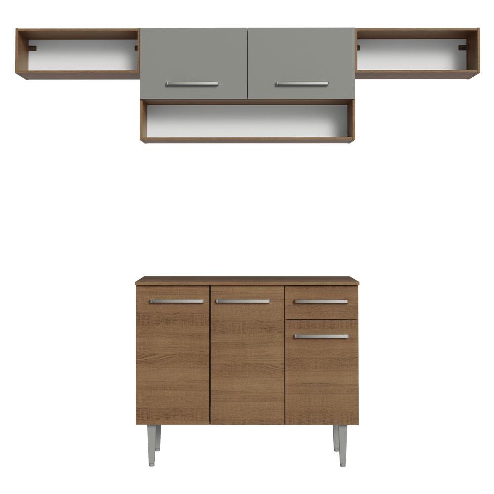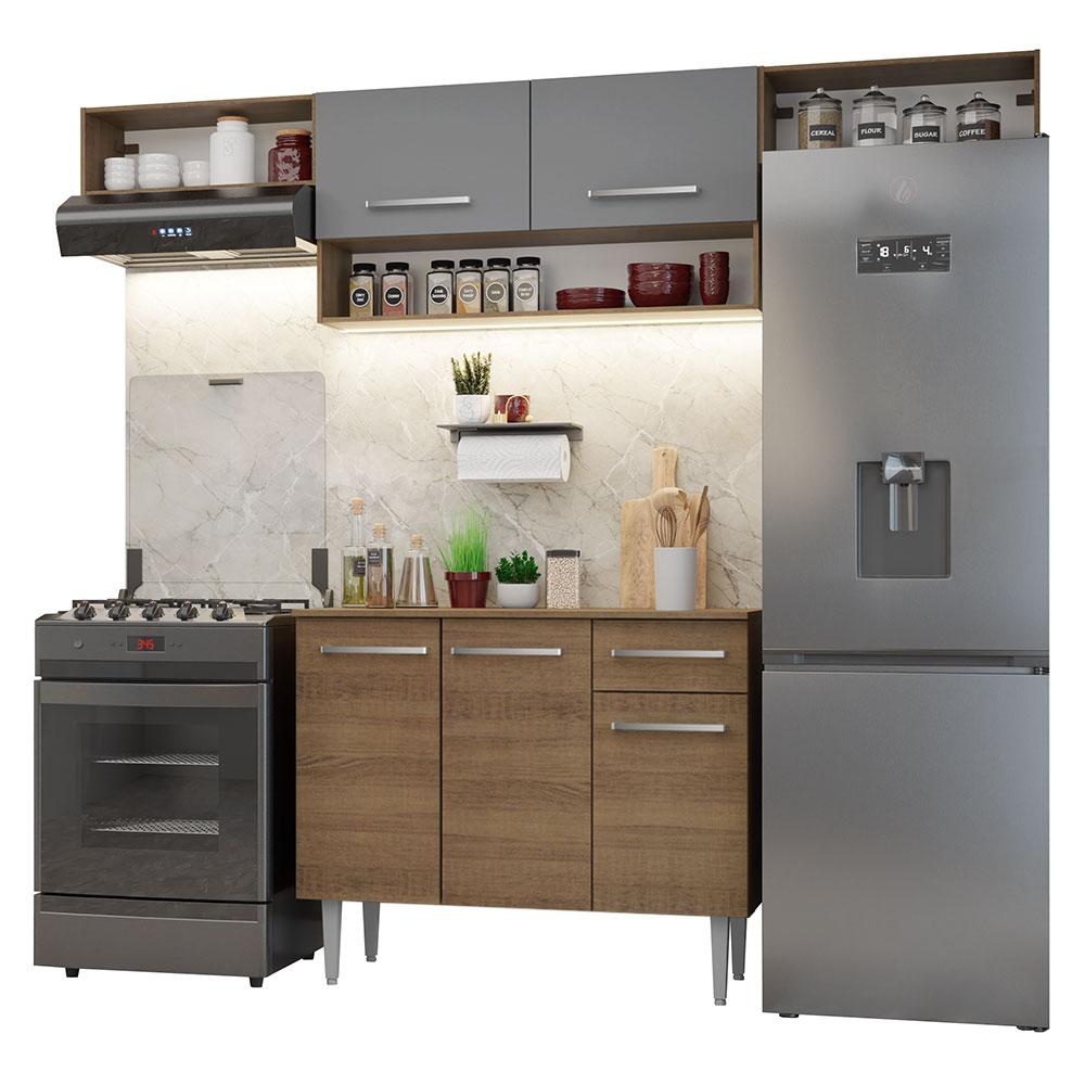 Armário de Cozinha Completa 225cm Rustic/Cinza Emilly Madesa 01XA