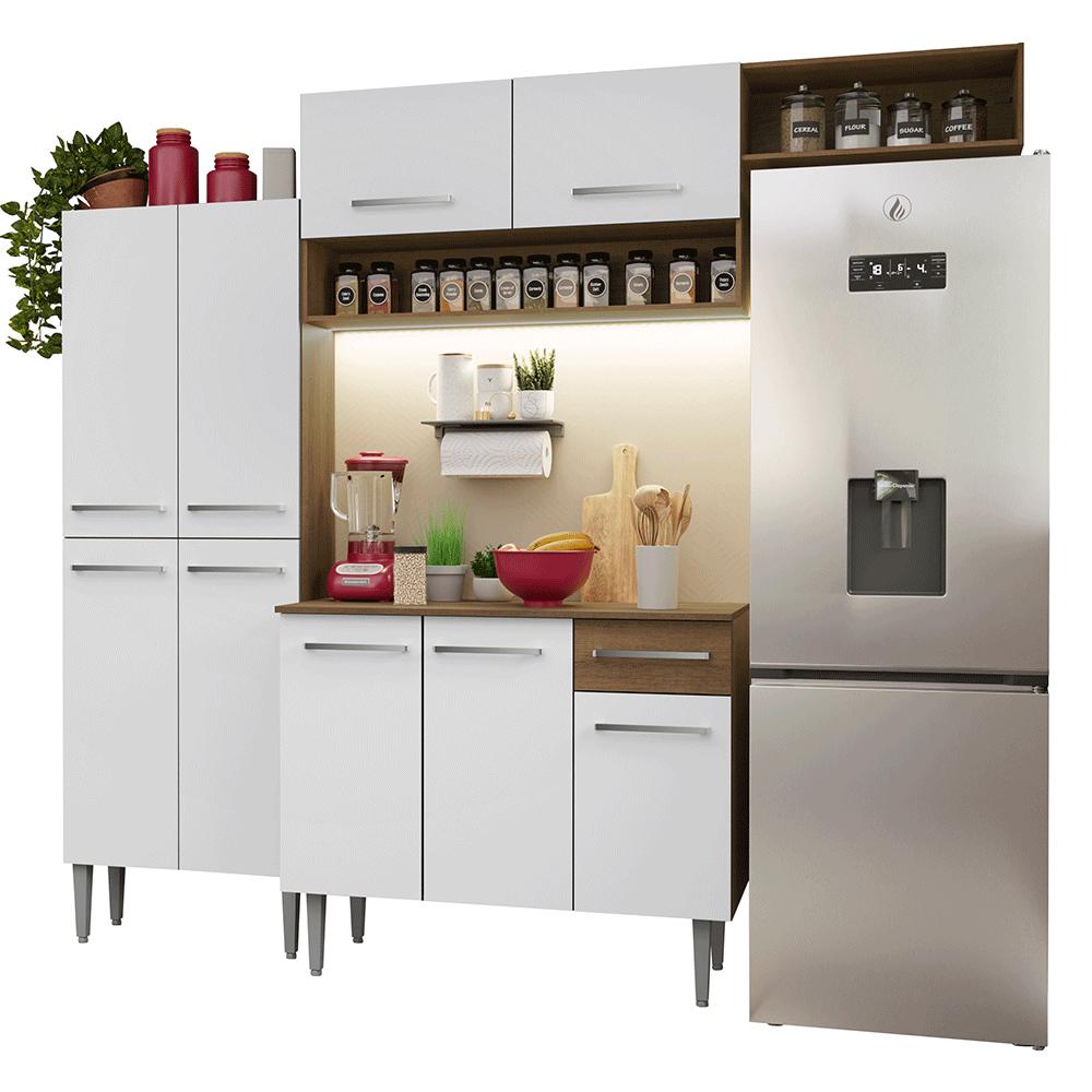Armário de Cozinha Completa 229cm Rustic/Branco Emilly Madesa 18XA