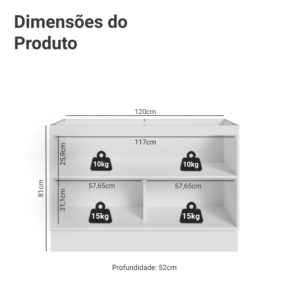 Balcão Gabinete de Pia 120 cm (Sem Tampo) Vik Madesa