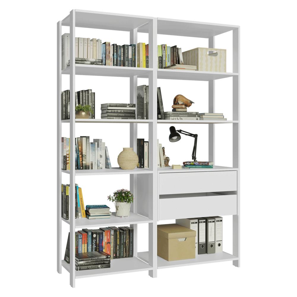 Se você precisa de um móvel prático para otimizar seu escritório, a Estante Multiuso da Madesa é a solução ideal para manter tudo organizado.Com prateleiras bem distribuídas e duas gavetas espaçosas, o conjunto oferece espaço para livros, pastas, documentos, caixas organizadoras e itens decorativos. É perfeito para deixar tudo visível e acessível no dia a dia.O acabamento branco de alta resistência traz leveza ao ambiente e combina facilmente com qualquer estilo de decoração, criando um visual moderno.Medidas totais:- 180 cm de altura- 129 cm de largura- 45 cm de profundidadeInformações técnicas:- Material: MDP- Peso suportado: 82kgO que você recebe:- Duas estantes multiuso com cinco prateleiras com oitro prateleiras e duas gavetasCódigo do produto: MDFC02003109É importante saber:- Imagens meramente ilustrativas, a decoração não acompanha o produto- A Madesa não disponibiliza serviço de montagem- O produto segue com manual de instalação e todas as ferragens necessárias para sua montagem- Por segurança, é obrigatório fixar o móvel na paredeA Madesa possui compromisso com a sustentabilidade. Geramos energia limpa em nossa própria usina, priorizamos fornecedores responsáveis e utilizamos plástico reciclado em nossa produção. Além disso, reinserimos sobras no ciclo de reciclagem e investimos no desenvolvimento de nossos colaboradores e da comunidade.Garantia: Este produto conta com 1 ano de garantia total, sendo 3 meses de garantia legal e 9 meses de garantia contratual. A garantia cobre exclusivamente defeitos de fabricação e vícios ocultos. Não estão cobertos: problemas decorrentes de montagem incorreta, uso inadequado, exposição à umidade, calor ou luz solar direta, modificações no produto ou desgaste natural.