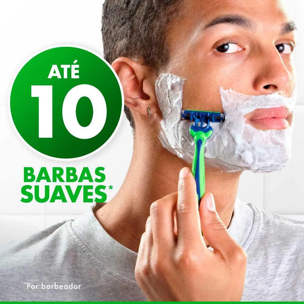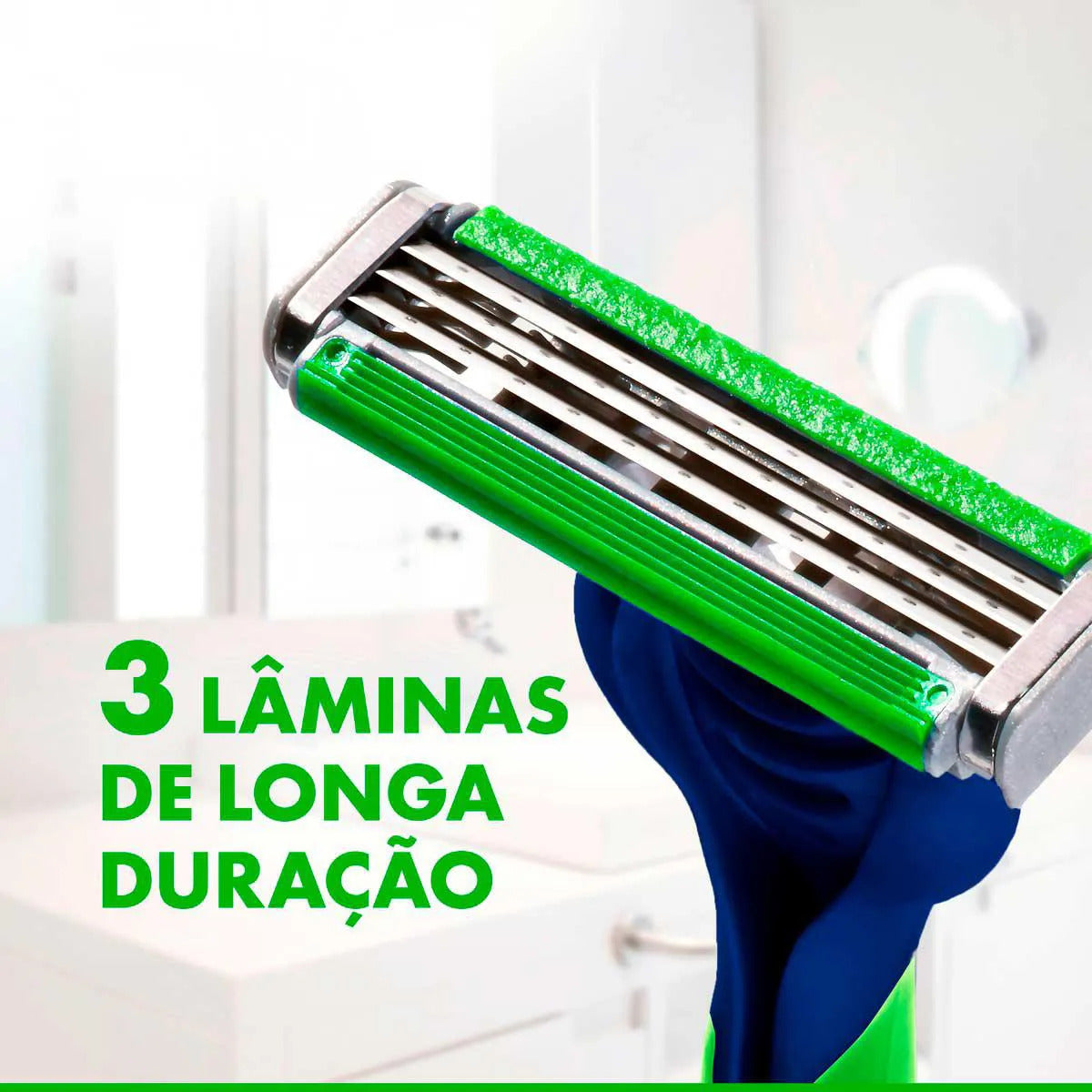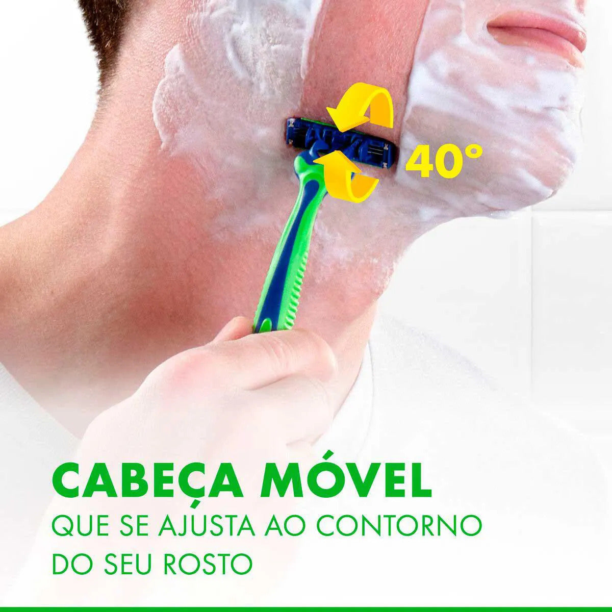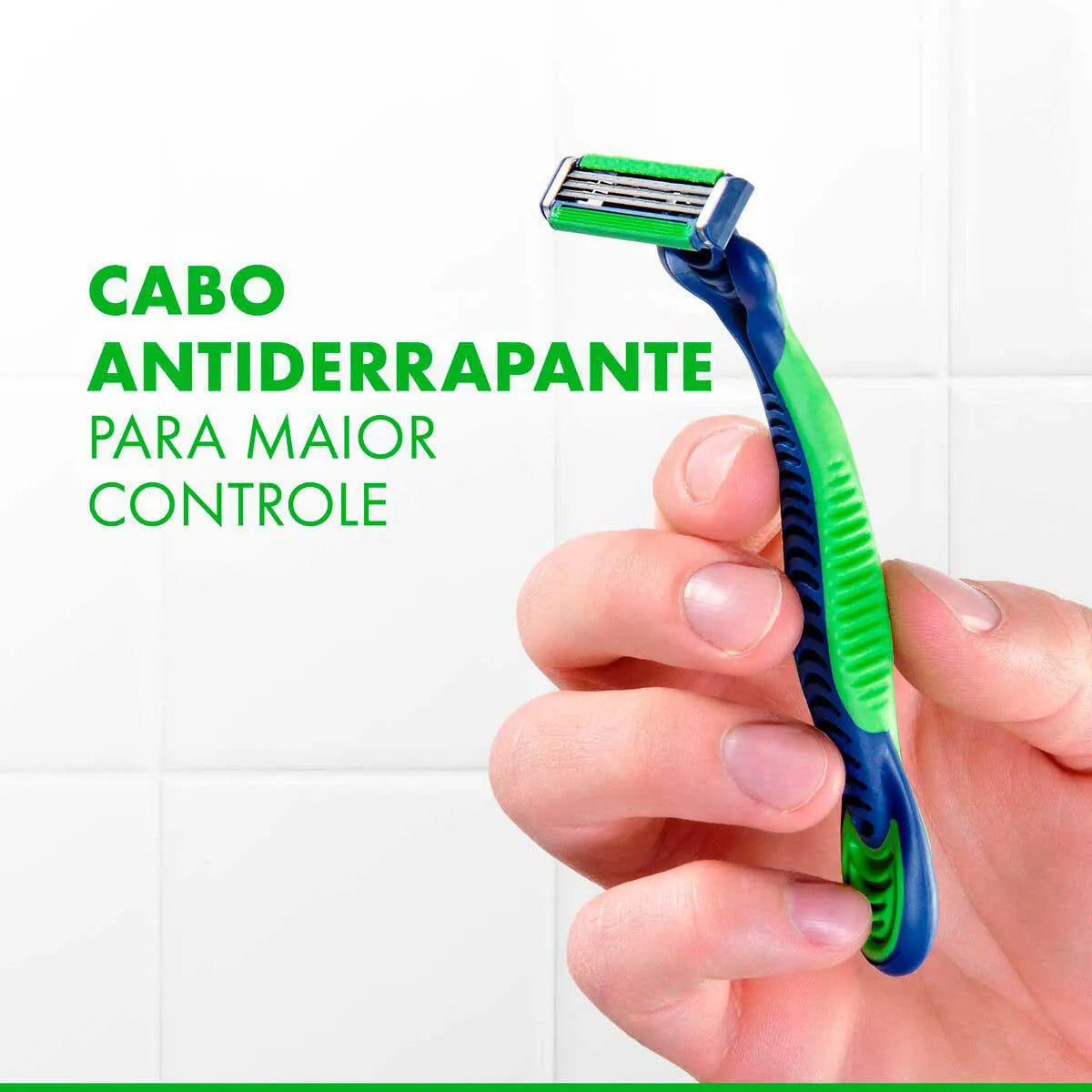 Para Que Serve:O que é o Aparelho de Barbear Gillette Prestobarba 3 Sensitive Aloe Vera? O Aparelho de Barbear Gillette Prestobarba 3 Sensitive Aloe Vera é da linha descartável da Gillete e funciona para um barbear mais seguro, com proteção extra, especial para peles mais sensíveis, evitando irritação. Sua tecnologia Comfortgel permite até 10 barbeados mais suaves. Ela conta com 3 lâminas estruturadas em molas independentes, além de cabeça móvel que se ajusta mais facilmente aos contornos do rosto. Com cabo antiderrapante, o Gillette Prestobarba 3 Sensitive Aloe Vera proporciona mais conforto para sua rotina de cuidados diários. O resultado é um barbear muito mais leve, suave e protegido todos os dias. Para que serve um Aparelho de Barbear Gillette Prestobarba 3 Sensitive Aloe Vera? Indicada para peles mais sensíveis, a Gillette Prestobarba 3 Sensitive oferece proteção extra durante o ato de barbear. Com a tecnologia Comfortgel, a lubrificação é ativada ao contato com a água, transformando a fita numa camada protetora entre a pele e as lâminas de barbear. Benefícios 3 lâminas de longa duração com revestimento de cromo para evitar oxidação. Fita lubrificante com toque de Aloe para um barbear suave. Tecnologia Comfortgel com fita lubrificante que se ativa com água para maior conforto. Barbear confortável até a 10ª utilização. Design aberto para 100% melhor enxágue. Como usar o Aparelho de Barbear Gillette Prestobarba 3 Sensitive Aloe Vera? Antes de começar, hidrate a pele lavando o rosto ou utilizando um esfoliante facial. Aplique o gel, creme ou espuma de barbear no rosto. Verifique sempre as condições de uso das lâminas. Deslize o aparelho de barbear pelo rosto em todos os sentidos e com gestos suaves. Enxágue as lâminas frequentemente. Após finalizar, aplique hidratante ou loção pós-barba. Especificações: Fabricante: P&G. Marca: Gillete. Modelo: Prestobarba 3. Linha: Sensitive. Lubrificante: Fita com Aloe. Tipo de cabeça: móvel. Quantidade de lâminas: 3. Composição Resinas termoplásticas, Elastômero, Aço inoxidável revestido com carbono, Cromo e Politetrafluoretileno. Lubrificantes, antioxidante, Aloe e corante. Advertências Produto não perecível. Não expor a temperaturas acima de 45ºC. Mantenha fora do alcance das crianças e de animais domésticos.