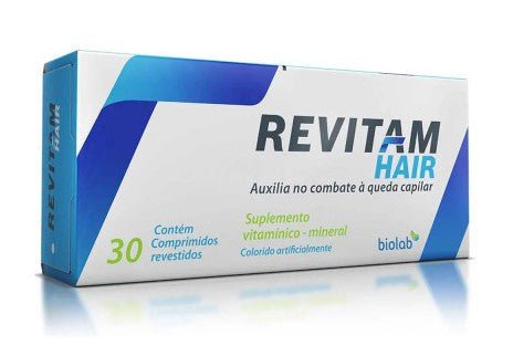 Para Que Serve:REVITAM HAIR Suplemento Vitamínico e Mineral Para os Cabelos - especialmente desenvolvido para auxiliar na formação, no crescimento e na saúde dos fios - As vitamina e minerais auxiliam no combate à queda capilar, no suporte nutricional necessário durante o crecimento dos cabelos, auxiliam na prevenção da queda, além de apresentarem propriedades antioxidantes.Modo de Usar:Recomenda-se ingerir 1 comprimido ao dia ou à critério do profissional de saúde.